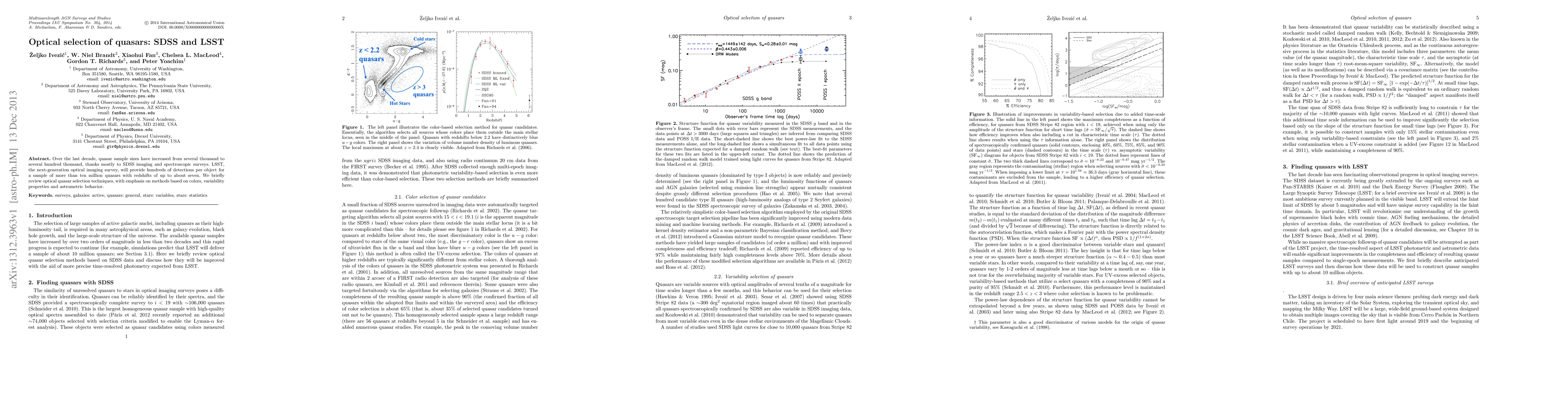 This paper reviews optical selection methods for quasars, highlighting advancements due to SDSS and anticipating LSST's contributions, focusing on color-based, variability, and astrometric techniques for identifying quasars up to redshifts of seven.