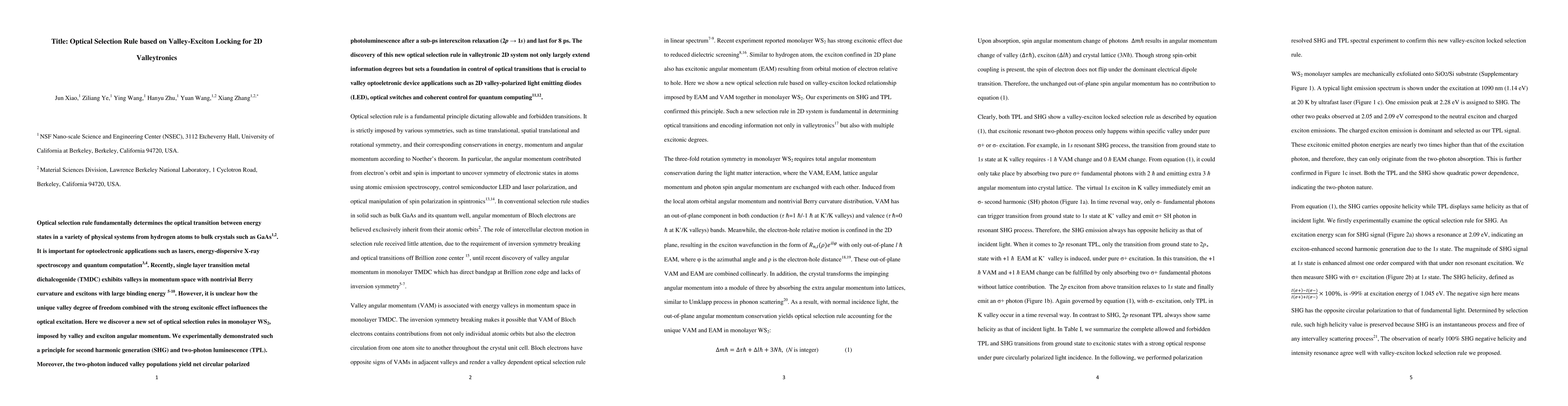 The paper discovers a novel optical selection rule in monolayer WS2 based on valley-exciton locking, impacting second harmonic generation and two-photon luminescence, paving the way for advanced valleytronic optoelectronic devices. The rule enables circularly polarized photoluminescence from two-photon induced valley populations, lasting 8 ps post relaxation, essential for future quantum computing and light emission technologies.