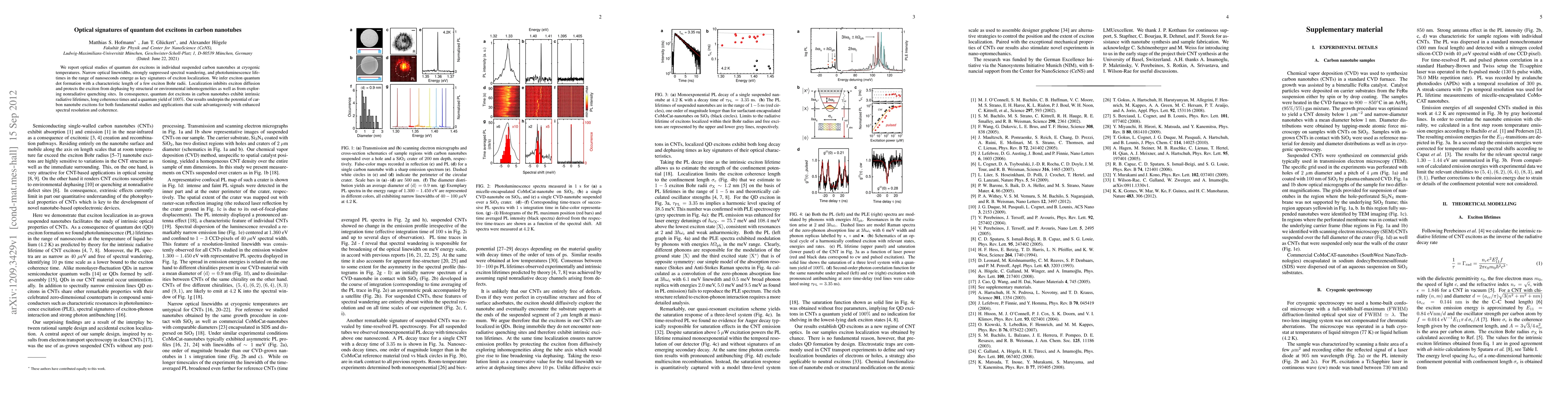 This study reveals optical signatures of quantum dot excitons in suspended carbon nanotubes, showing narrow linewidths, stable photoluminescence, and nanosecond lifetimes due to exciton localization. This localization enhances spectral resolution, coherence, and quantum yield, indicating potential for advanced applications.
