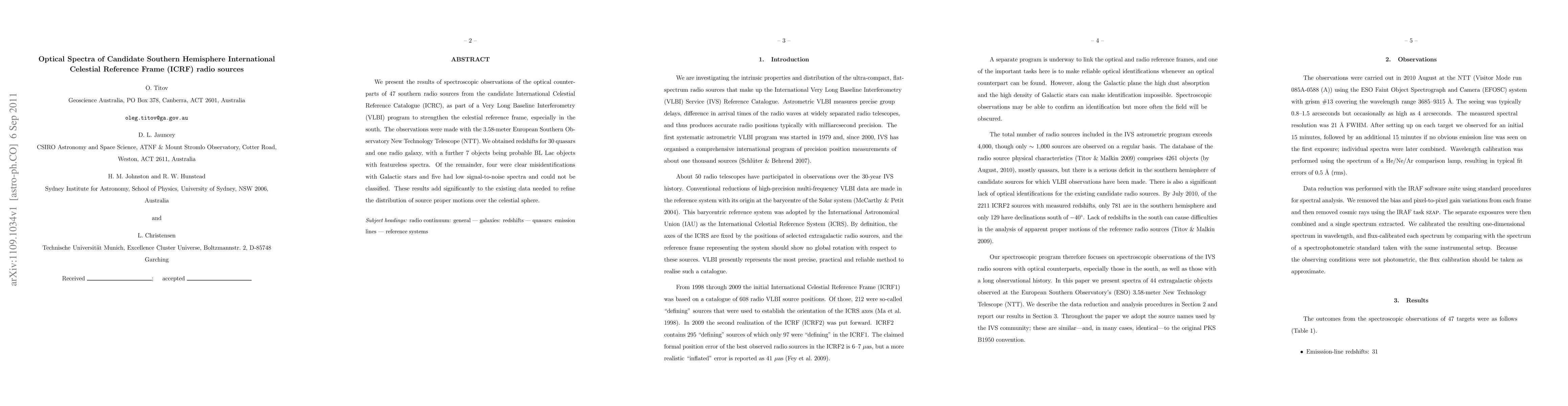 The research combines optical spectroscopy with VLBI data to refine the distribution of proper motions, offering a comprehensive approach to strengthening the celestial reference frame in the southern sky.