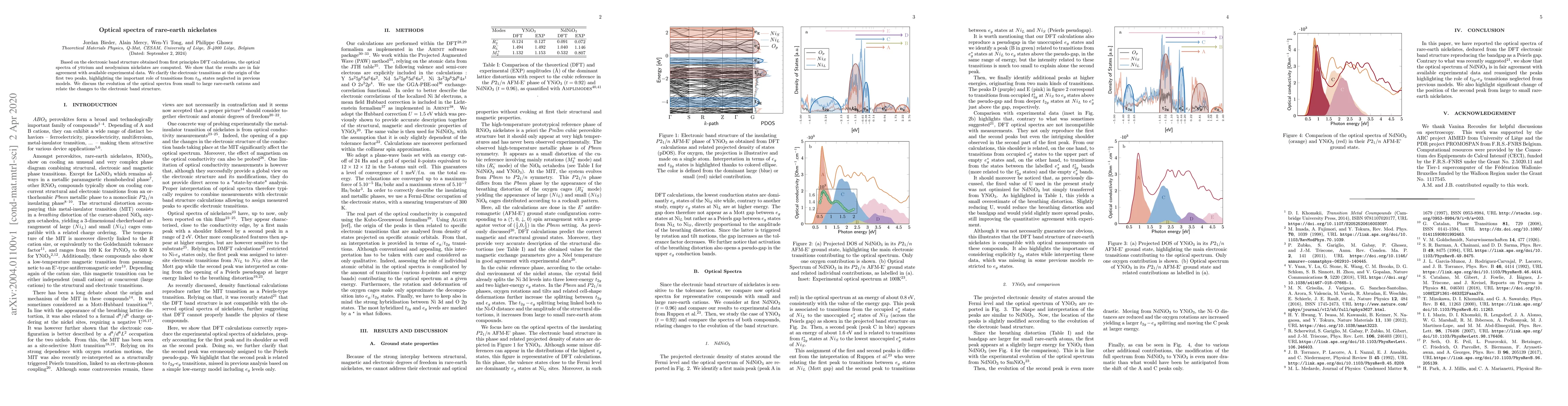 Researchers used first principles DFT calculations to compute the optical spectra of yttrium and neodymium nickelates, achieving fair agreement with experimental data and highlighting previously neglected transitions from t2g states.