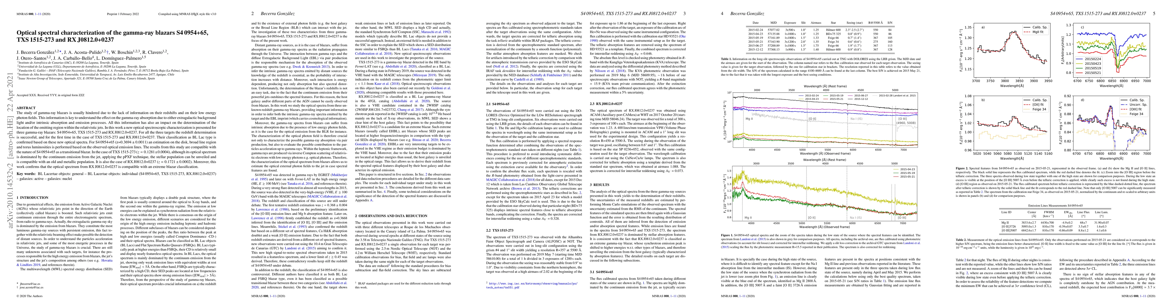 The study of gamma-ray blazars is usually hindered due to the lack of information on their redshifts and on their low energy photon fields. This information is key to understand the effect on the gamma-ray absorption due to either extragalactic background light and/or intrinsic absorption and emission processes. All this information has also an impact on the determination of the location of the emitting region within the relativistic jets. In this work a new optical spectroscopic characterization is presented for three gamma-ray blazars: S4 0954+65, TXS 1515-273 and RX J0812.0+0237. For all the three targets the redshift determination is successful, and for the first time in the case of TXS 1515-273 and RX J0812.0+0237. Their classification as BL~Lac type is confirmed based on these new optical spectra. For S4 0954+65 (z=$0.3694\pm0.0011$) an estimation on the disk, broad line region and torus luminosities is performed based on the observed optical emission lines. The results from this study are compatible with the nature of S4 0954+65 as a transitional blazar. In the case of TXS 1515-273 ($z=0.1281\pm 0.0004$), although its optical spectrum is dominated by the continuum emission from the jet, applying the pPXF technique, the stellar population can be unveiled and is compatible with an old and metallic population. It is also the case of RX J0812.0+0237 ($z=0.1721\pm 0.0002$). Moreover, this work confirms that the optical spectrum from RX J0812.0+0237 is compatible with an extreme blazar classification.