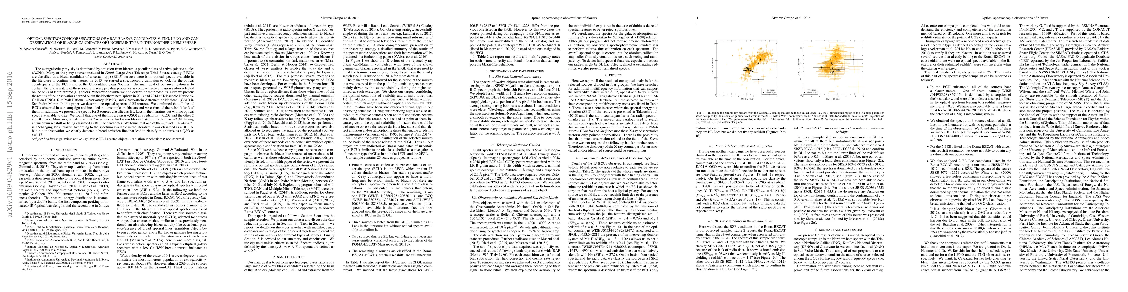 The extragalactic $\gamma$-ray sky is dominated by emission from blazars, a peculiar class of active galactic nuclei (AGNs). Many of the $\gamma$-ray sources included in Fermi -Large Area Telescope Third Source catalog (3FGL) are classified as a blazar candidate of uncertain type (BCU) because there is no optical spectra available in the literature to confirm their nature. In 2013 we started a spectroscopic campaign to look for the optical counterparts of the BCUs and of the Unidentified $\gamma$-ray Sources. The main goal of our investigation is to confirm the blazar nature of these sources having peculiar properties as compact radio emission and/or selected on the basis of their infrared (IR) colors. Whenever possible we also determine their redshifts. Here we present the results of the observations carried out in the Northern hemisphere in 2013 and 2014 at Telescopio Nazionale Galilleo (TNG), Kitt Peak National Observatory (KPNO) and Observatorio Astron\'omico Nacional (OAN) in San Pedro M\'artir. In this paper we describe the optical spectra of 25 sources. We confirmed that all the 15 BCUs observed in our campaign and included in our sample are blazars and we estimated the redshift for 3 of them. In addition, we present the spectra for 3 sources classified as BL Lacs in the literature but with no optical spectra available to date. We found that one of them is a quasar (QSO) at a redshift $z$ = 0.208 and the other 2 are BL Lacs. Moreover, we also present 7 new spectra for known blazars listed in the Roma-BZCAT having an uncertain redshift or being classified as BL Lac candidates. We found that one of them, 5BZB J0724+2621 is a `changing look' blazar. According to the spectrum available in the literature it was classified as a BL Lac but in our observation we clearly detected a broad emission line that lead to classify this source as a QSO at $z$=1.17.