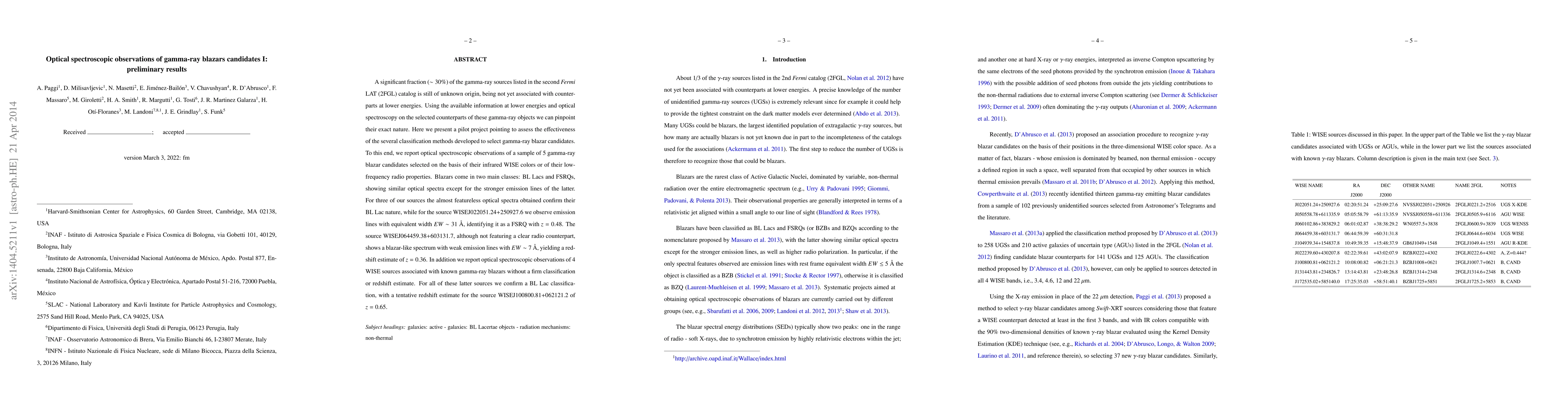 A significant fraction ($\sim 30$ %) of the gamma-ray sources listed in the second $\textit{Fermi}$ LAT (2FGL) catalog is still of unknown origin, being not yet associated with counterparts at lower energies. Using the available information at lower energies and optical spectroscopy on the selected counterparts of these gamma-ray objects we can pinpoint their exact nature. Here we present a pilot project pointing to assess the effectiveness of the several classification methods developed to select gamma-ray blazar candidates. To this end, we report optical spectroscopic observations of a sample of 5 gamma-ray blazar candidates selected on the basis of their infrared WISE colors or of their low-frequency radio properties. Blazars come in two main classes: BL Lacs and FSRQs, showing similar optical spectra except for the stronger emission lines of the latter. For three of our sources the almost featureless optical spectra obtained confirm their BL Lac nature, while for the source WISEJ022051.24+250927.6 we observe emission lines with equivalent width $EW\sim 31$ $\AA$, identifying it as a FSRQ with $z = 0.48$. The source WISEJ064459.38+603131.7, although not featuring a clear radio counterpart, shows a blazar-like spectrum with weak emission lines with $EW \sim 7$ $\AA$, yielding a redshift estimate of $z=0.36$. In addition we report optical spectroscopic observations of 4 WISE sources associated with known gamma-ray blazars without a firm classification or redshift estimate. For all of these latter sources we confirm a BL Lac classification, with a tentative redshift estimate for the source WISEJ100800.81+062121.2 of $z = 0.65$.