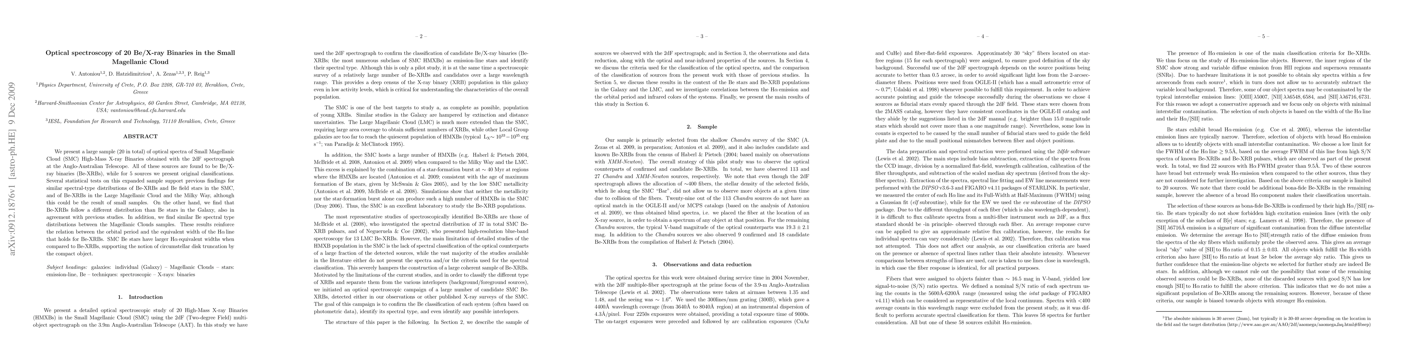 This study presents optical spectra of 20 Be/X-ray binaries in the Small Magellanic Cloud (SMC), revealing similar spectral-type distributions to Be stars in the SMC, LMC, and Milky Way. The findings support the idea that Be-XRBs have circumstellar disks truncated by the compact object.