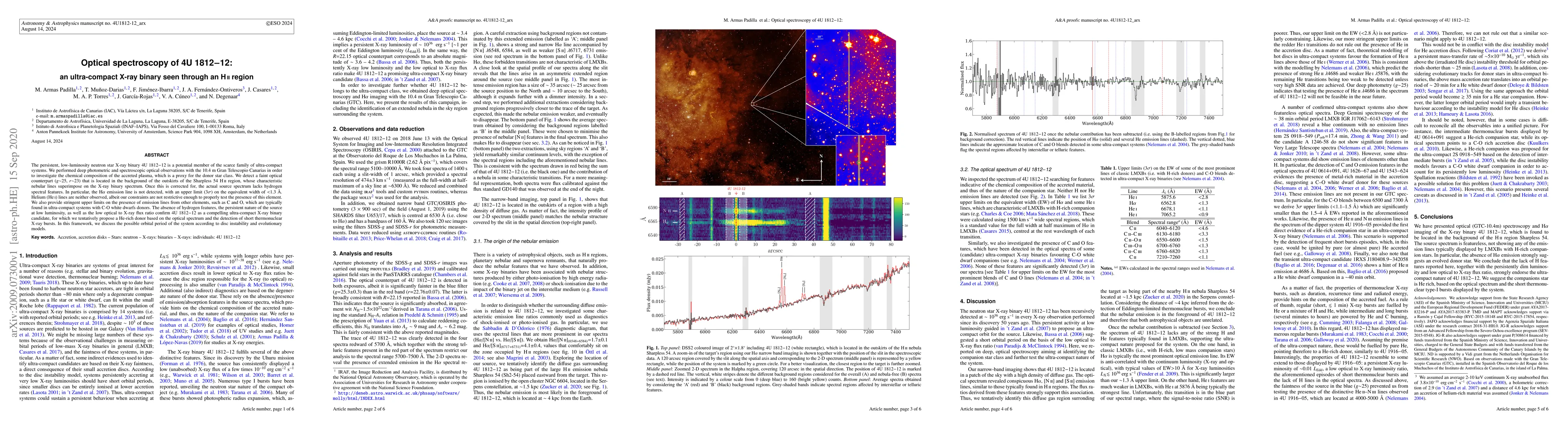 This study uses deep optical spectroscopy to investigate the chemical composition of the accreted plasma in the ultra-compact X-ray binary 4U 1812-12, revealing a lack of hydrogen and helium features, suggesting a He-rich donor star and supporting its classification as an ultra-compact X-ray binary.