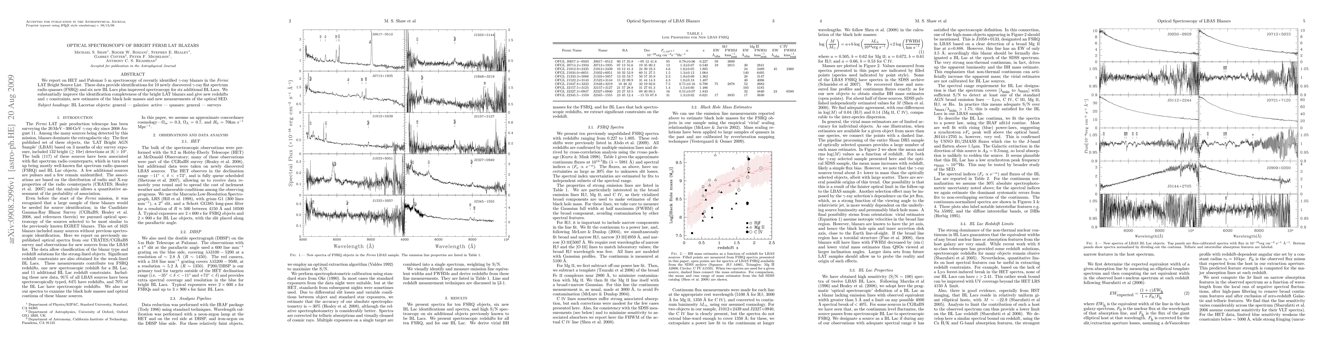 We report on HET and Palomar 5 m spectroscopy of recently identified $\gamma$-ray blazars in the {\it Fermi} LAT Bright Source List. These data provide identifications for 10 newly discovered $\gamma$-ray flat spectrum radio quasars (FSRQ) and six new BL Lacs plus improved spectroscopy for six additional BL Lacs. We substantially improve the identification completeness of the bright LAT blazars and give new redshifts and $z$ constraints, new estimates of the black hole masses and new measurements of the optical SED.