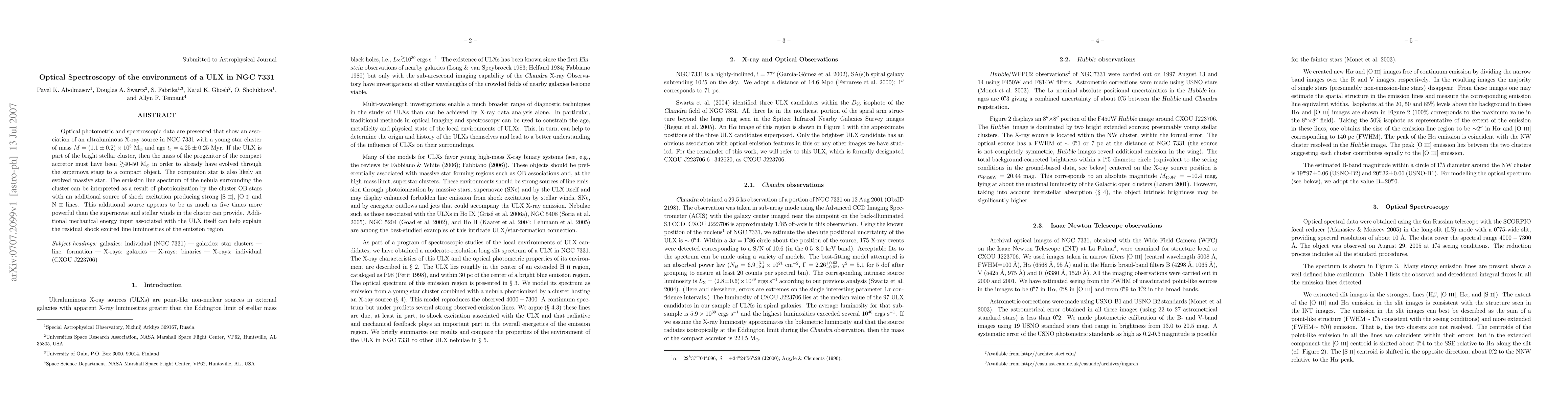 This study reveals a young star cluster in NGC 7331 associated with an ultraluminous X-ray source, suggesting the compact accretor's progenitor was a massive star. The surrounding nebula's emission lines indicate photoionization by OB stars and additional shock excitation possibly linked to the ULX itself.