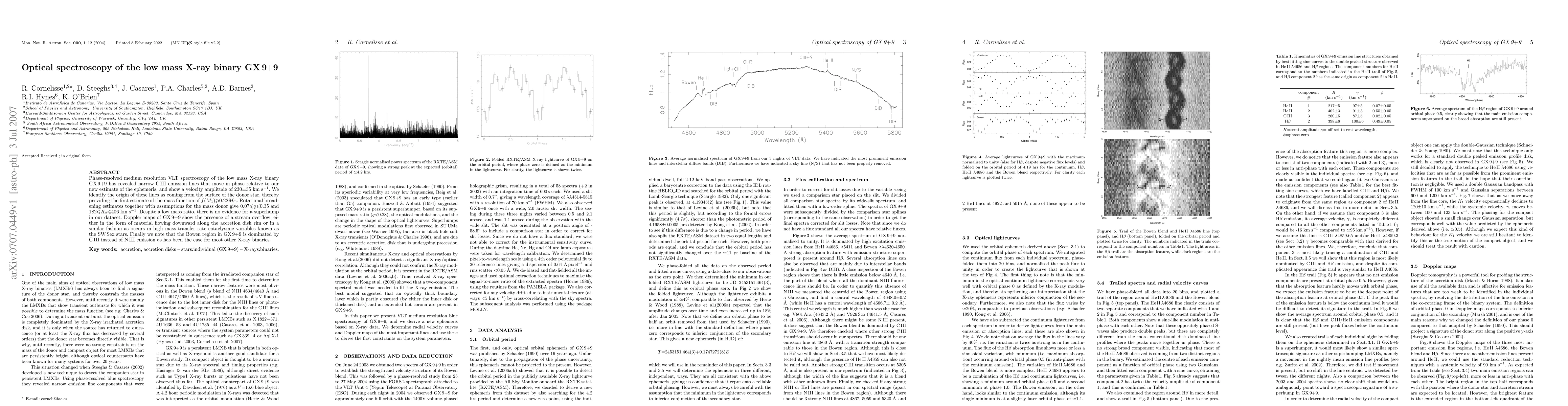 binary GX9+9 has revealed narrow CIII emission lines that move in phase