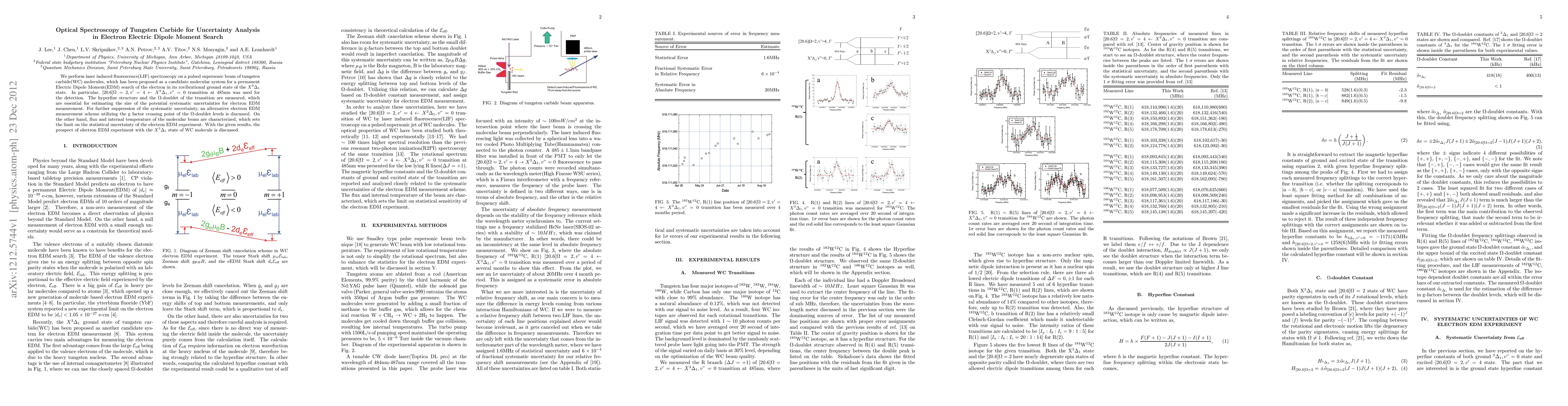 We perform laser induced fluorescence(LIF) spectroscopy on a pulsed supersonic beam of tungsten carbide(WC) molecules, which has been proposed as a candidate molecular system for a permanent Electric Dipole Moment(EDM) search of the electron in its rovibrational ground state of the X3Delta1 state. In particular, [20.6]Omega=2, v'=4 <- X3Delta1,v"=0 transition at 485nm was used for the detection. The hyperfine structure and the Omega-doublet of the transition are measured, which are essential for estimating the size of the potential systematic uncertainties for electron EDM measurement. For further suppression of the systematic uncertainty, an alternative electron EDM measurement scheme utilizing the g factor crossing point of the Omega-doublet levels is discussed. On the other hand, flux and internal temperature of the molecular beam are characterized, which sets the limit on the statistical uncertainty of the electron EDM experiment. With the given results, the prospect of electron EDM experiment with the X3Delta1 state of WC molecule is discussed.