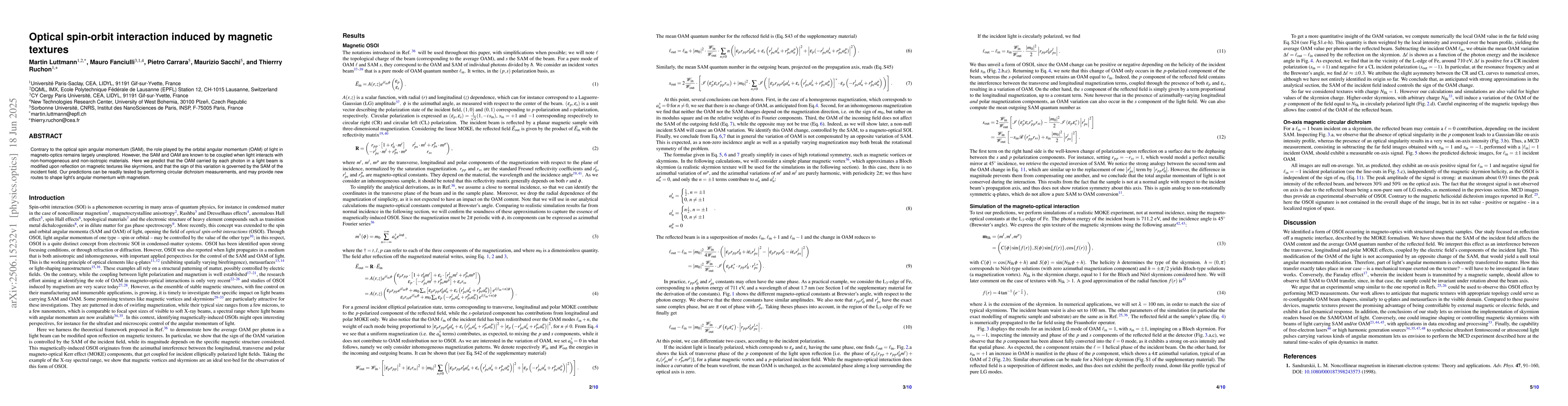 Contrary to the optical spin angular momentum (SAM), the role played by the orbital angular momentum (OAM) of light in magneto-optics remains largely unexplored. However, the SAM and OAM are known to be coupled when light interacts with non-homogeneous and non-isotropic materials. Here we predict that the OAM carried by each photon in a light beam is modified upon reflection on magnetic textures like skyrmions, and that the sign of this variation is governed by the SAM of the incident field. Our predictions can be readily tested by performing circular dichroism measurements, and may provide new routes to shape light's angular momentum with magnetism.