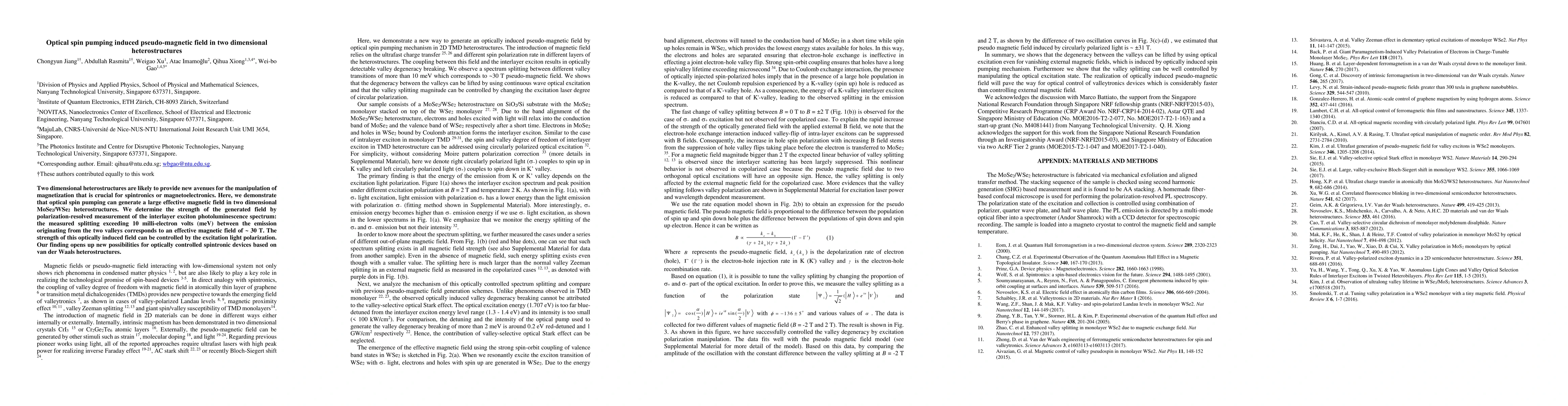 Two dimensional heterostructures are likely to provide new avenues for the manipulation of magnetization that is crucial for spintronics or magnetoelectronics. Here, we demonstrate that optical spin pumping can generate a large effective magnetic field in two dimensional MoSe2/WSe2 heterostructures. We determine the strength of the generated field by polarization-resolved measurement of the interlayer exciton photoluminescence spectrum: the measured splitting exceeding 10 milli-electron volts (meV) between the emission originating from the two valleys corresponds to an effective magnetic field of ~ 30 T. The strength of this optically induced field can be controlled by the excitation light polarization. Our finding opens up new possibilities for optically controlled spintronic devices based on van der Waals heterostructures.