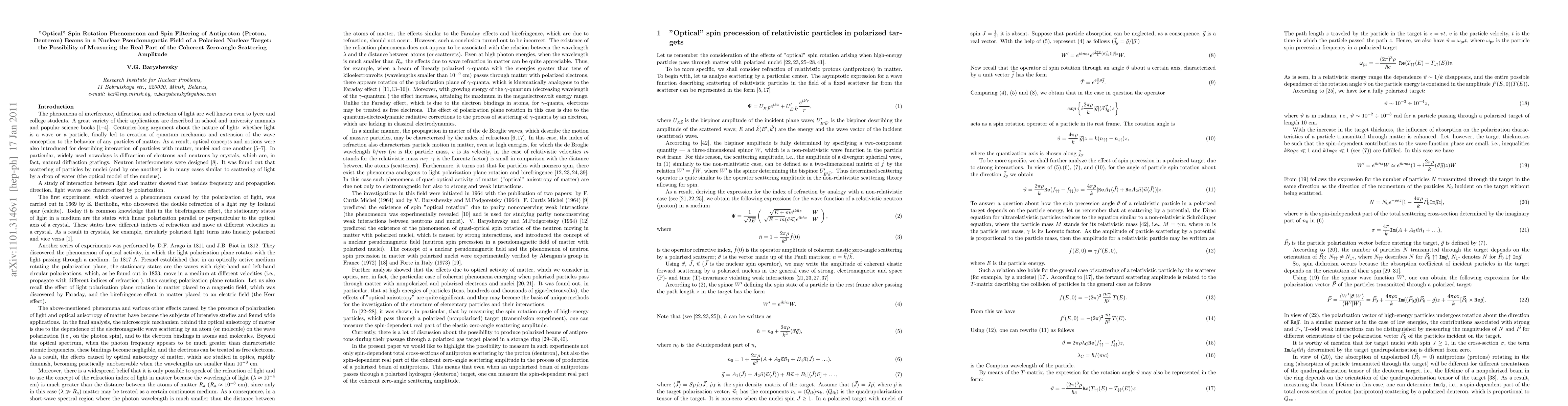 This paper explores the optical spin rotation phenomenon and spin filtering of antiproton beams in a pseudomagnetic field of a polarized target, demonstrating the potential to measure the real part of the coherent zero-angle scattering amplitude in antiproton-proton (deuteron) interactions. This method could provide insights into spin-dependent total cross-sections during the production of polarized antiproton beams.