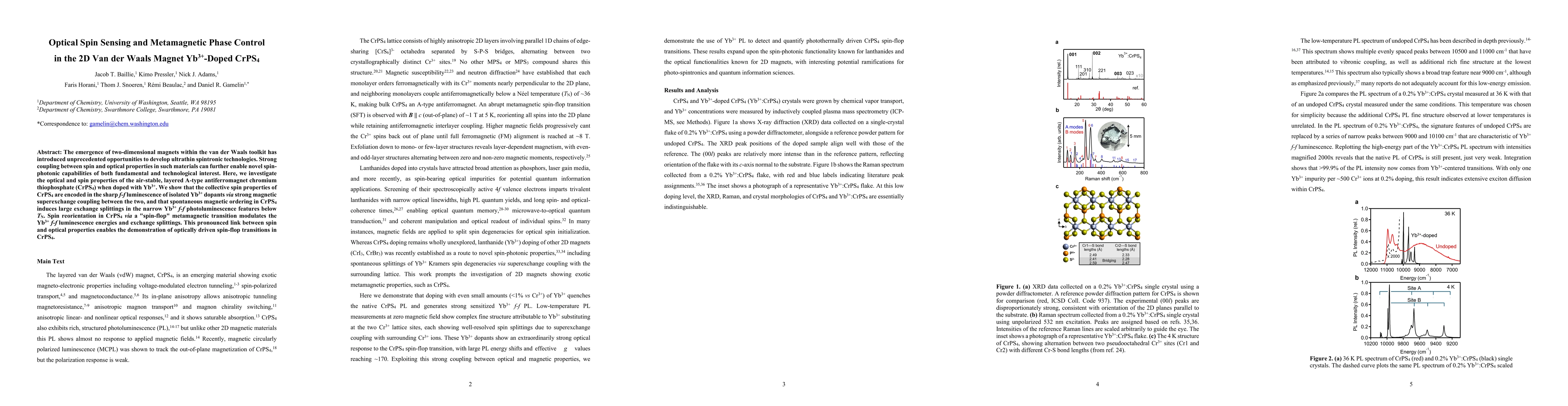The emergence of two-dimensional magnets within the van der Waals toolkit has introduced unprecedented opportunities to develop ultrathin spintronic technologies. Strong coupling between spin and optical properties in such materials can further enable novel spin-photonic capabilities of both fundamental and technological interest. Here, we investigate the optical and spin properties of the air-stable, layered A-type antiferromagnet chromium thiophosphate (CrPS4) when doped with Yb3+. We show that the collective spin properties of CrPS4 are encoded in the sharp f-f luminescence of isolated Yb3+ dopants via strong magnetic superexchange coupling between the two, and that spontaneous magnetic ordering in CrPS4 induces large exchange splittings in the narrow Yb3+ f-f photoluminescence features below TN. Spin reorientation in CrPS4 via a "spin-flop" metamagnetic transition modulates the Yb3+ f-f luminescence energies and exchange splittings. This pronounced link between spin and optical properties enables the demonstration of optically driven spin-flop transitions in CrPS4.