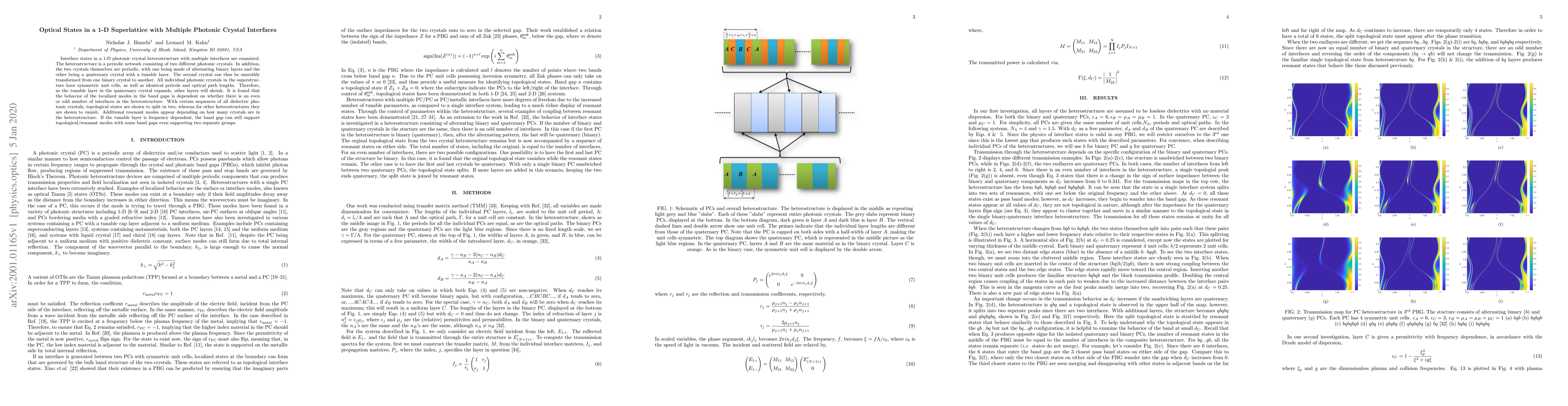 Interface states in a 1-D photonic crystal heterostructure with multiple interfaces are examined. It is found that the behavior of the localized modes in the photonic band gaps is dependent on whether there is an even or odd number of photonic crystal interfaces in the heterostructure. With certain sequences of all dielectric photonic crystals, topological states are shown to split in two, whereas for other heterostructures they are shown to vanish. Additional resonant modes appear depending on how many crystals are in the heterostructure.