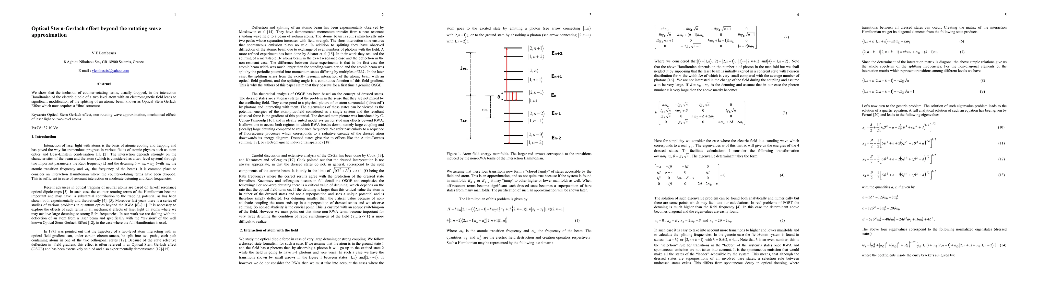 This paper demonstrates that incorporating counter-rotating terms in the interaction Hamiltonian of an electric dipole of a two-level atom with an electromagnetic field significantly alters the Optical Stern Gerlach Effect, introducing a fine structure to the atomic beam splitting.