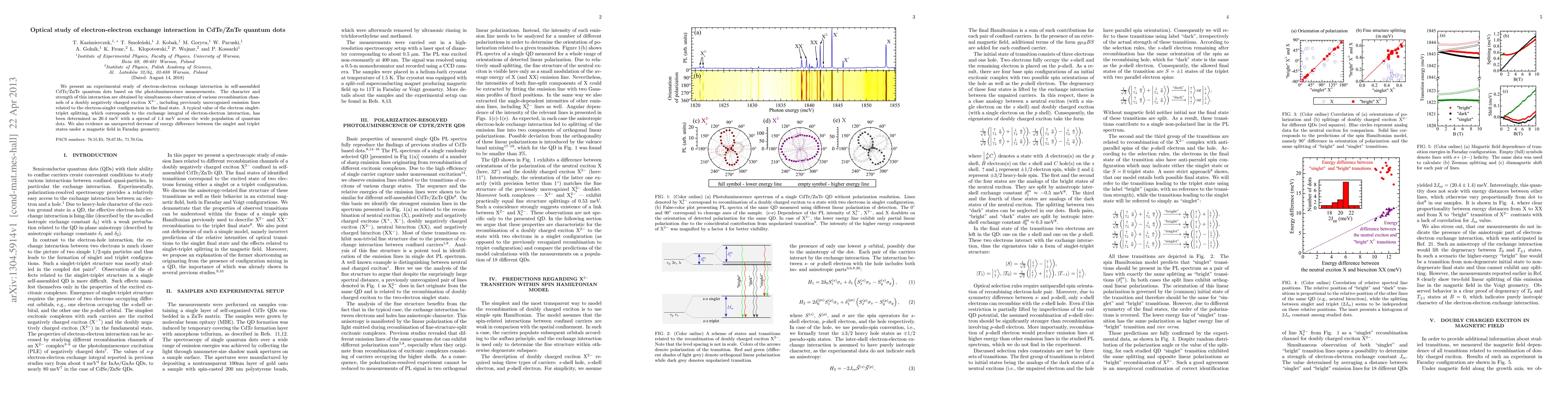 This study experimentally investigates electron-electron exchange interaction in CdTe/ZnTe quantum dots via photoluminescence, revealing a typical exchange integral of 20.4 meV with a small spread, and finds an unexpected decrease in singlet-triplet energy difference under a magnetic field.