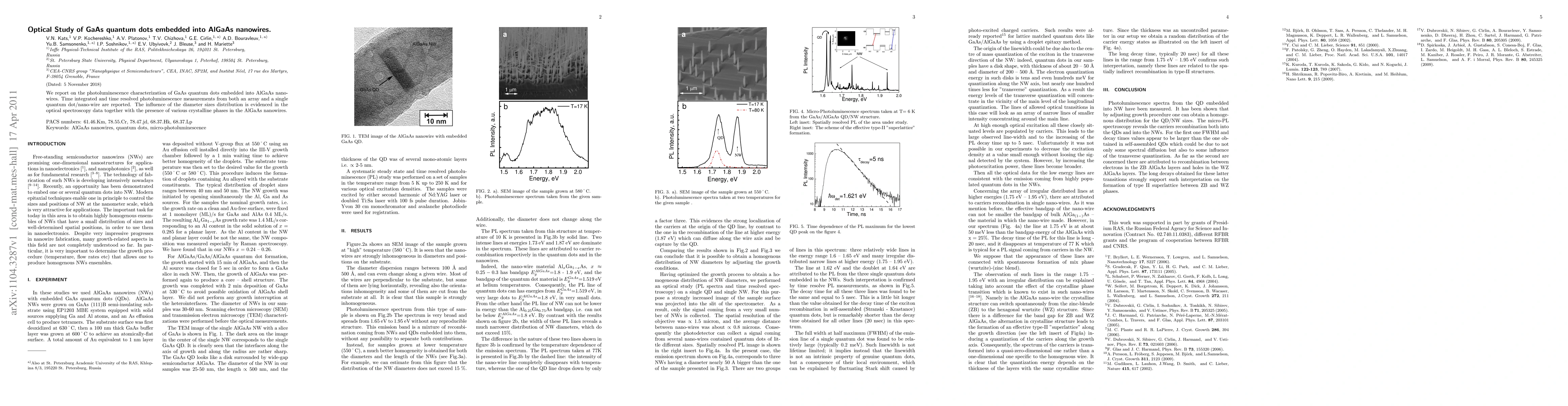 This study characterizes the photoluminescence of GaAs quantum dots within AlGaAs nanowires using both time-integrated and time-resolved measurements. The research highlights the impact of nanowire diameter size distribution and crystalline phases on optical properties.