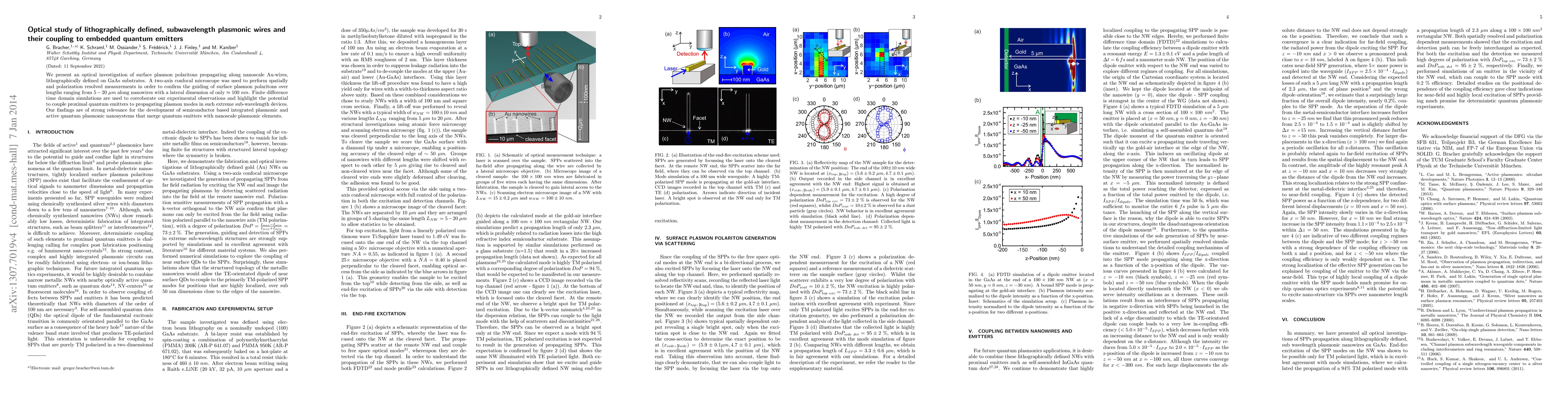 This study investigates the optical behavior of surface plasmon polaritons in nanoscale gold wires on GaAs substrates, confirming their propagation over micrometer lengths. The research demonstrates the potential for coupling quantum dot emitters to these plasmon modes, which is crucial for developing integrated quantum plasmonic nanosystems.