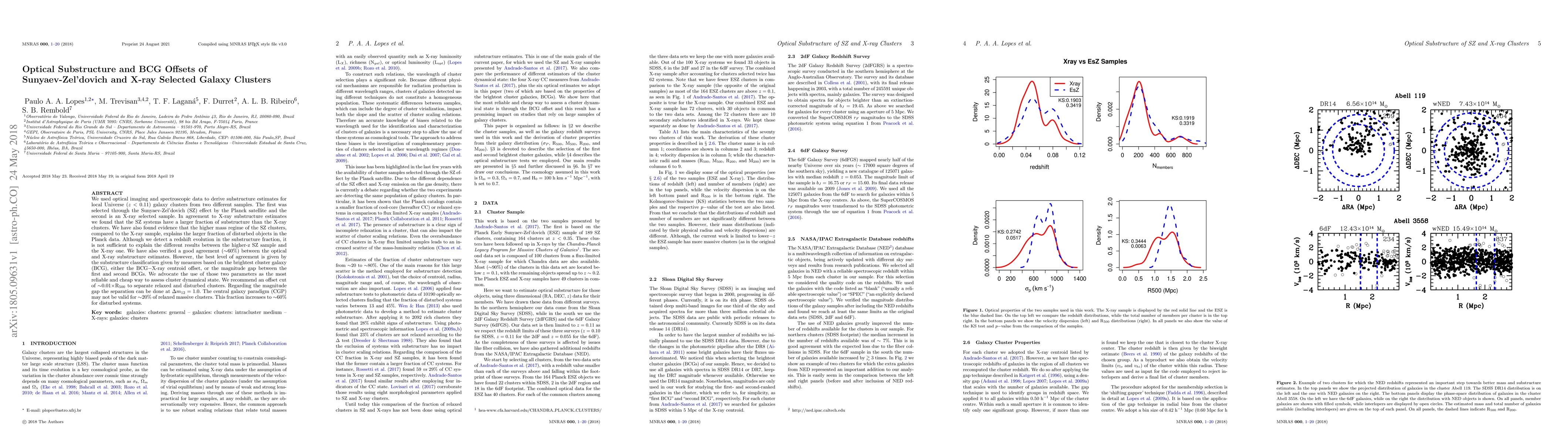 We used optical imaging and spectroscopic data to derive substructure estimates for local Universe ($z < 0.11$) galaxy clusters from two different samples. The first was selected through the Sunyaev-Zel'dovich (SZ) effect by the Planck satellite and the second is an X-ray selected sample. In agreement to X-ray substructure estimates we found that the SZ systems have a larger fraction of substructure than the X-ray clusters. We have also found evidence that the higher mass regime of the SZ clusters, compared to the X-ray sample, explains the larger fraction of disturbed objects in the Planck data. Although we detect a redshift evolution in the substructure fraction, it is not sufficient to explain the different results between the higher-z SZ sample and the X-ray one. We have also verified a good agreement ($\sim$60$\%$) between the optical and X-ray substructure estimates. However, the best level of agreement is given by the substructure classification given by measures based on the brightest cluster galaxy (BCG), either the BCG$-$X-ray centroid offset, or the magnitude gap between the first and second BCGs. We advocate the use of those two parameters as the most reliable and cheap way to assess cluster dynamical state. We recommend an offset cut of $\sim$0.01$\times$R$_{500}$ to separate relaxed and disturbed clusters. Regarding the magnitude gap the separation can be done at $\Delta m_{12} = 1.0$. The central galaxy paradigm (CGP) may not be valid for $\sim$20$\%$ of relaxed massive clusters. This fraction increases to $\sim$60$\%$ for disturbed systems.
