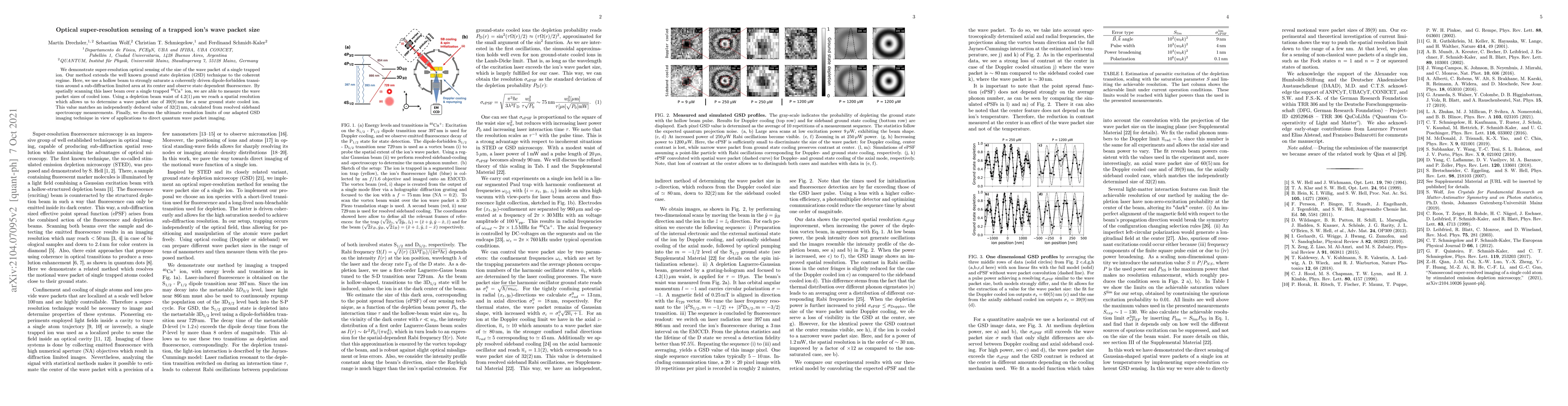 We demonstrate super-resolution optical sensing of the size of the wave packet of a single trapped ion. Our method extends the well known ground state depletion (GSD) technique to the coherent regime. Here, we use a hollow beam to strongly saturate a coherently driven dipole-forbidden transition around a sub-diffraction limited area at its center and observe state dependent fluorescence. By spatially scanning this laser beam over a single trapped $^{40}\mathrm{Ca}^+$ ion, we are able to measure the wave packet sizes of cooled ions. Using a depletion beam waist of $4.2(1)\,\mu$m we reach a spatial resolution which allows us to determine a wave packet size of $39(9)\,$nm for a near ground state cooled ion. This value matches an independently deduced value of $32(2)\,$nm, calculated from resolved sideband spectroscopy measurements. Finally, we discuss the ultimate resolution limits of our adapted GSD imaging technique in view of applications to direct quantum wave packet imaging.