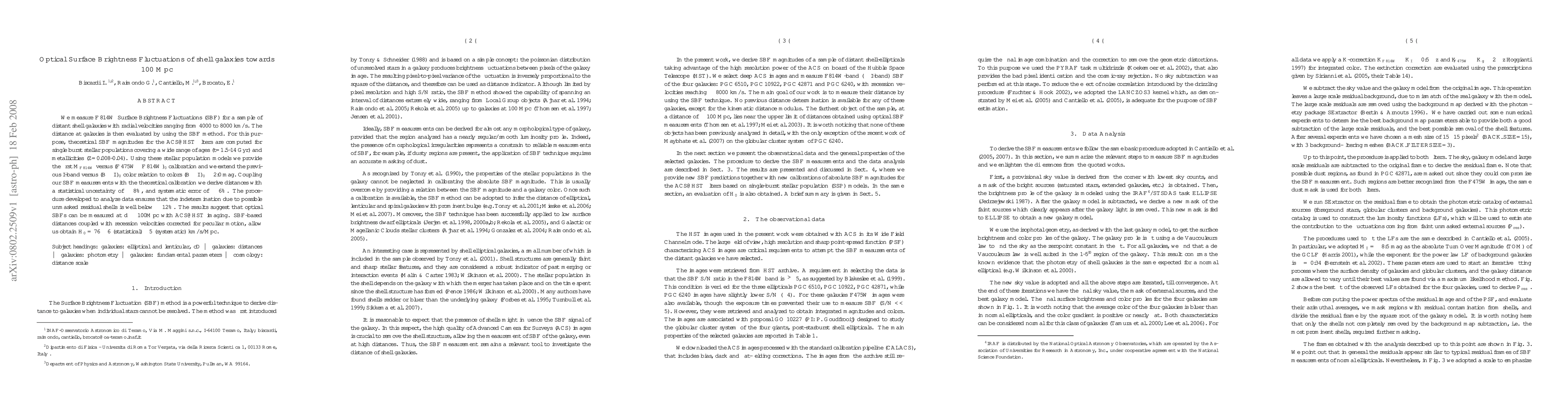 Researchers measured optical surface brightness fluctuations in distant shell galaxies to estimate distances up to 100 Mpc, achieving a 76 km/s/Mpc value for the Hubble constant with a high degree of accuracy.