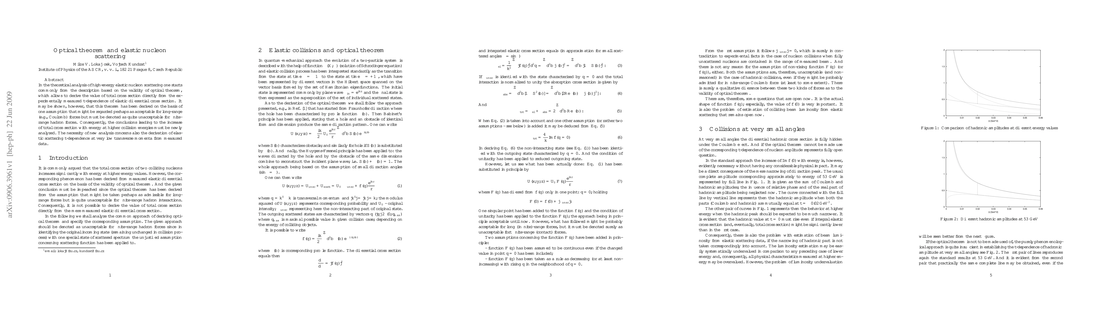 In the theoretical analysis of high-energy elastic nucleon scattering one starts commonly from the description based on the validity of optical theorem, which allows to derive the value of total cross section directly from the experimentally measured t-dependence of elastic differential cross section. It may be shown, however, that this theorem has been derived on the basis of one assumption that might be regarded perhaps as acceptable for long-range (e.g., Coulomb) forces but must be denoted as quite unacceptable for finite-range hadron forces. Consequently, the conclusions leading to the increase of total cross section with energy at higher collision energies must be newly analyzed. The necessity of new analysis concerns also the derivation of elastic scattering t-dependence at very low transverse momenta from measured data.