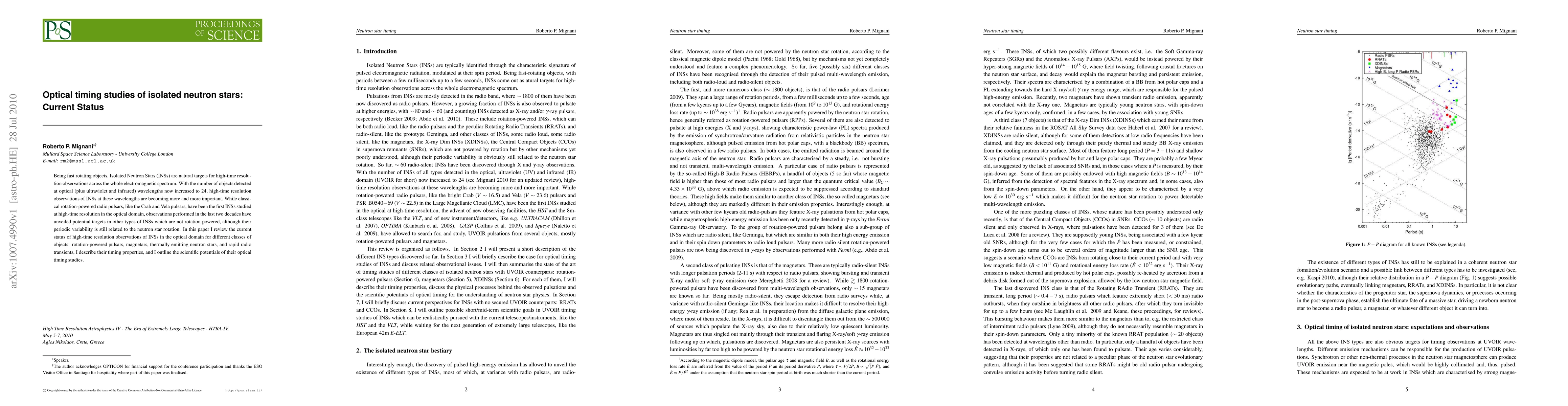 This paper reviews high-time resolution optical observations of isolated neutron stars (INSs), focusing on various classes including rotation-powered pulsars, magnetars, and thermally emitting neutron stars. It highlights the scientific potential of these studies and the growing importance of optical timing as the number of detected INSs increases.