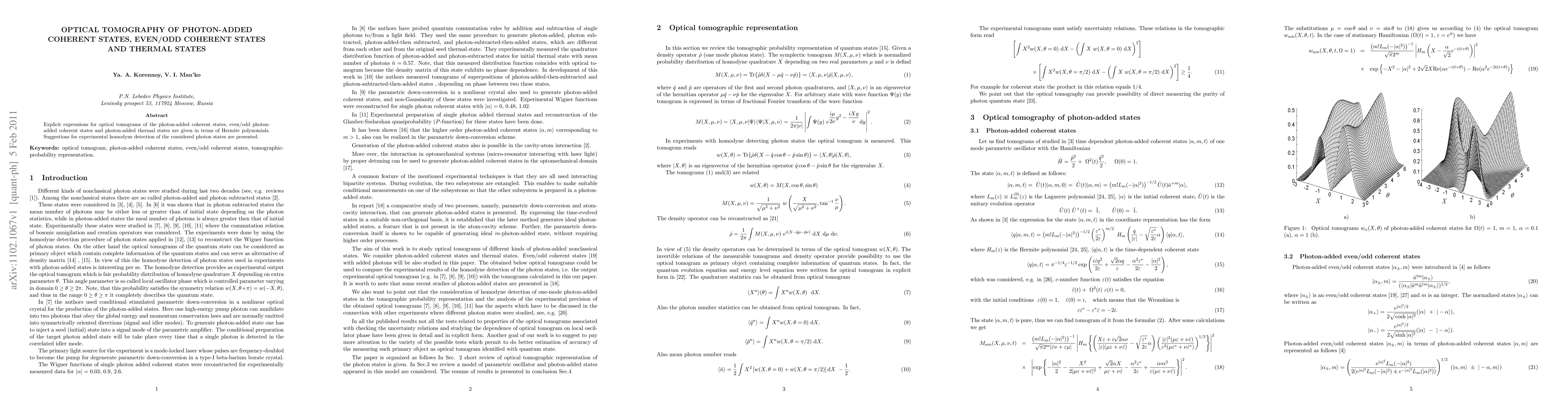 The research provides explicit optical tomograms for photon-added coherent states, even/odd coherent states, and thermal states using Hermite polynomials, and proposes homodyne detection methods for experimental observation of these photon states.