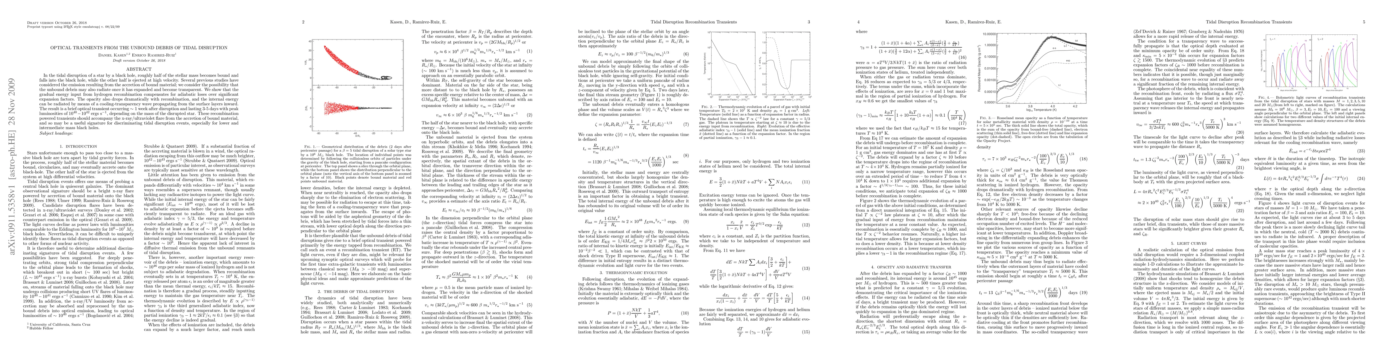 This paper explores the optical transients from unbound debris ejected during a star's tidal disruption by a black hole, showing that recombination energy can sustain a brief optical flare lasting 3-5 days, peaking at 10^40-10^42 ergs/s, aiding in identifying such events.