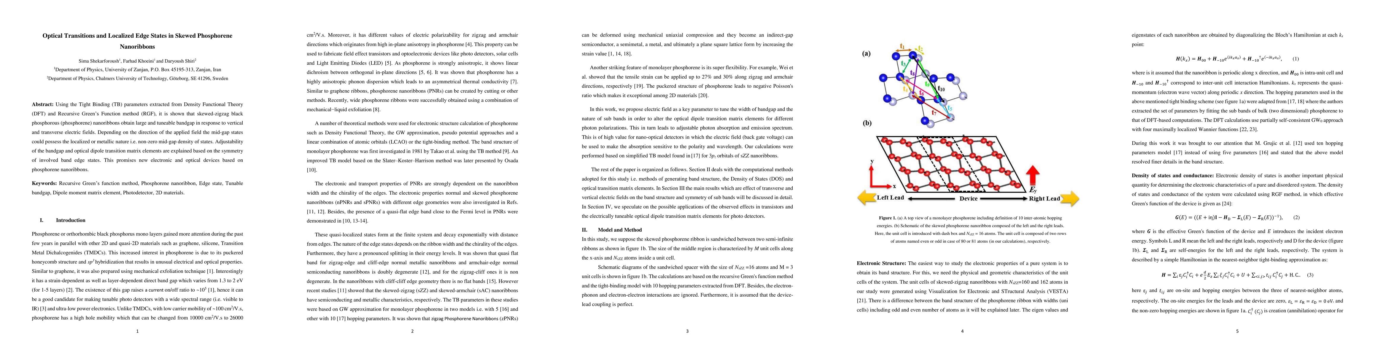 This paper demonstrates that skewed-zigzag phosphorene nanoribbons exhibit a large and tunable bandgap under electric fields, with mid-gap states that can be localized or metallic. The study explains the adjustability of the bandgap and optical transitions through the symmetry of edge states, suggesting potential for novel electronic and optical devices.