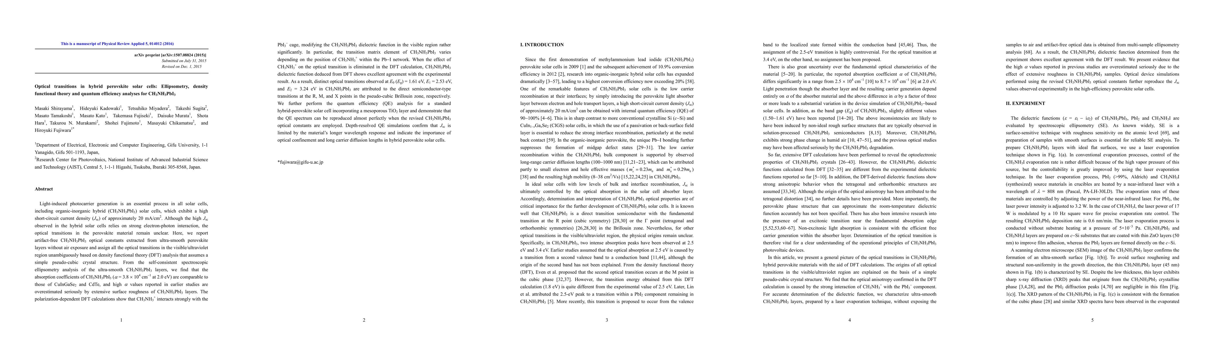 This paper reports precise optical constants for CH3NH3PbI3 perovskite layers, extracted via ellipsometry and validated by DFT analysis, revealing accurate optical transitions. Quantum efficiency analysis shows that revised optical constants improve the understanding of charge transport and limitations in hybrid perovskite solar cells.