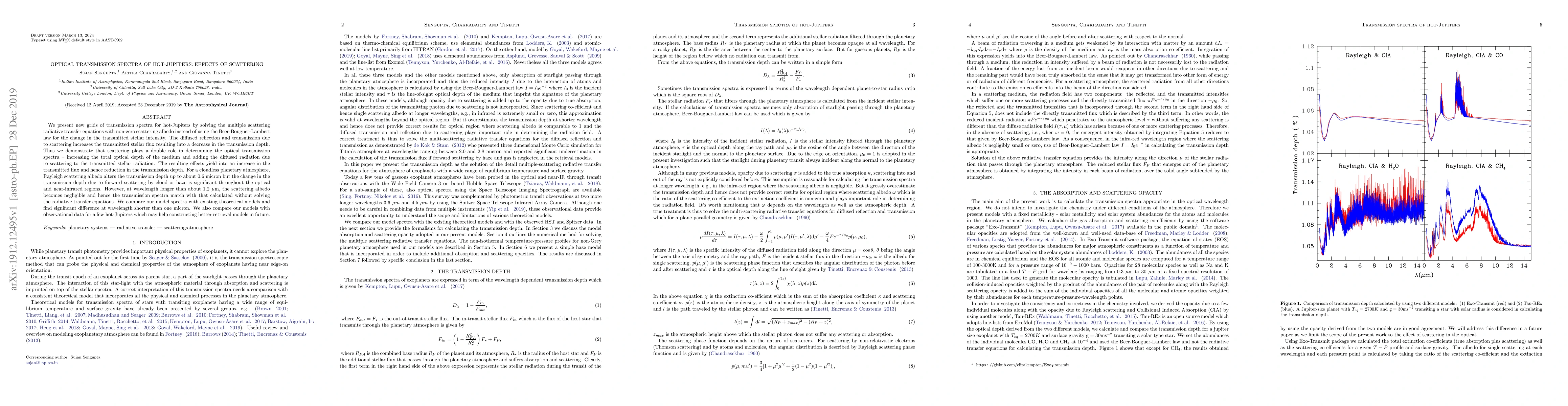 This paper presents new transmission spectra grids for hot-Jupiters, solving radiative transfer equations with scattering effects, which show that scattering increases transmitted flux and decreases transmission depth. The model shows significant differences from existing models at wavelengths shorter than 1 micron and matches observations beyond 1.2 microns.