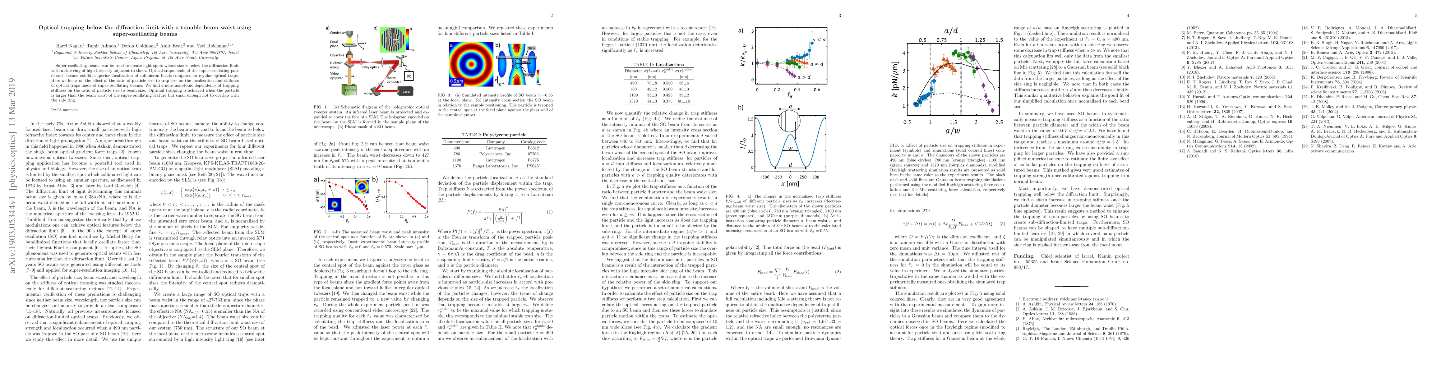 Super-oscillating beams can be used to create light spots whose size is below the diffraction limit with a side ring of high intensity adjacent to them. Optical traps made of the super-oscillating part of such beams exhibit superior localization of submicron beads compared to regular optical traps. Here we focus on the effect of the ratio of particle size to trap size on the localization and stiffness of optical traps made of super-oscillating beams. We find a non-monotonic dependence of trapping stiffness on the ratio of particle size to beam size. Optimal trapping is achieved when the particle is larger than the beam waist of the superoscillating feature but small enough not to overlap with the side ring.