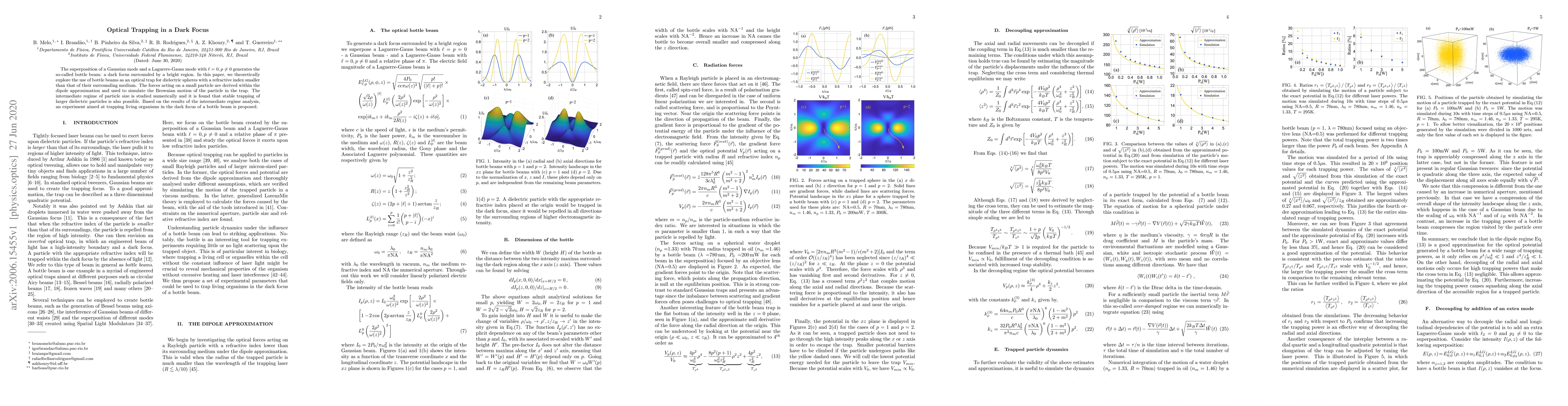 Researchers explored using bottle beams as optical traps for dielectric spheres, finding that stable trapping of larger particles is possible in the intermediate regime. They propose an experiment to trap living organisms in a dark focus of a bottle beam.