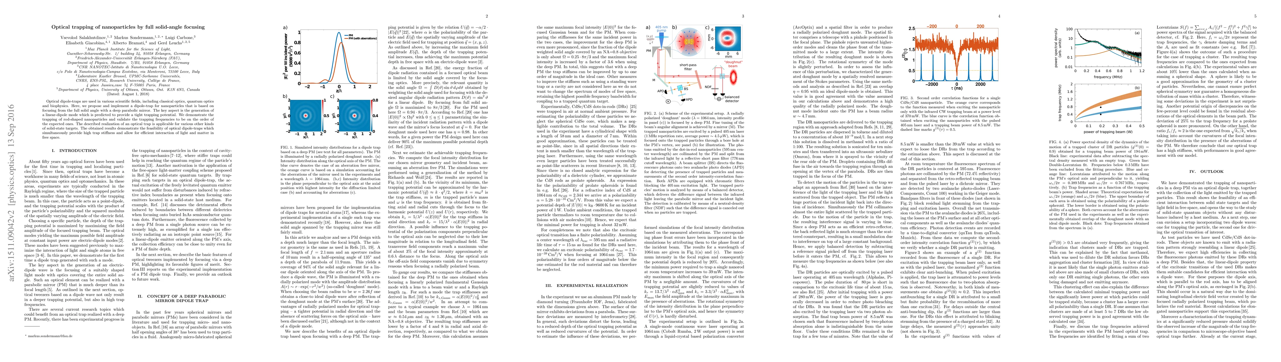 This paper proposes and demonstrates an optical dipole-trap for nanoparticles using full solid-angle focusing with a deep parabolic mirror, achieving tight trapping potentials. The method successfully traps rod-shaped nanoparticles and shows high trapping frequencies, indicating its potential for various solid-state applications.