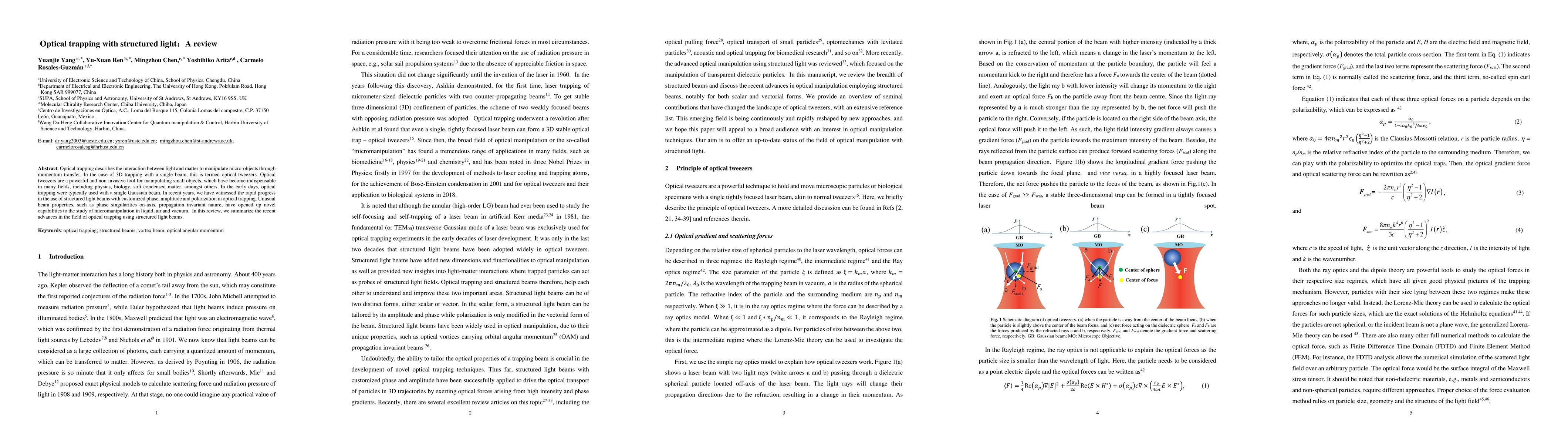 Optical trapping describes the interaction between light and matter to manipulate micro-objects through momentum transfer. In the case of 3D trapping with a single beam, this is termed optical tweezers. Optical tweezers are a powerful and non-invasive tool for manipulating small objects, which have become indispensable in many fields, including physics, biology, soft condensed matter, amongst others. In the early days, optical trapping were typically used with a single Gaussian beam. In recent years, we have witnessed the rapid progress in the use of structured light beams with customized phase, amplitude and polarization in optical trapping. Unusual beam properties, such as phase singularities on-axis, propagation invariant nature, have opened up novel capabilities to the study of micromanipulation in liquid, air and vacuum. In this review, we summarize the recent advances in the field of optical trapping using structured light beams.