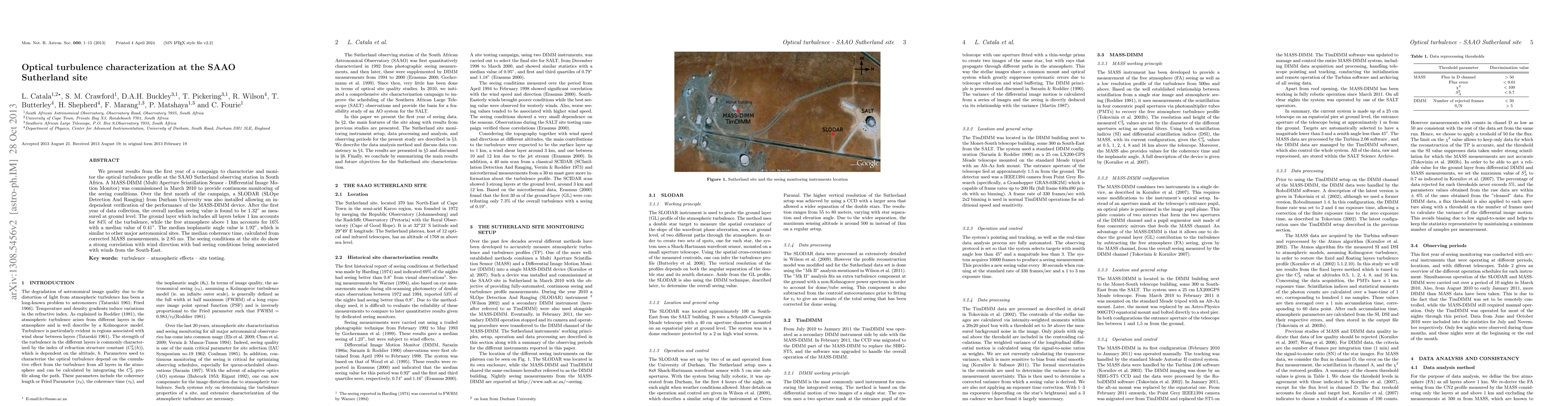 This study characterizes optical turbulence at the SAAO Sutherland site in South Africa using a MASS-DIMM and a SLODAR device. After a year, the median seeing value is 1.32", with 84% of turbulence in the ground layer and 16% in the free atmosphere above 1 km.