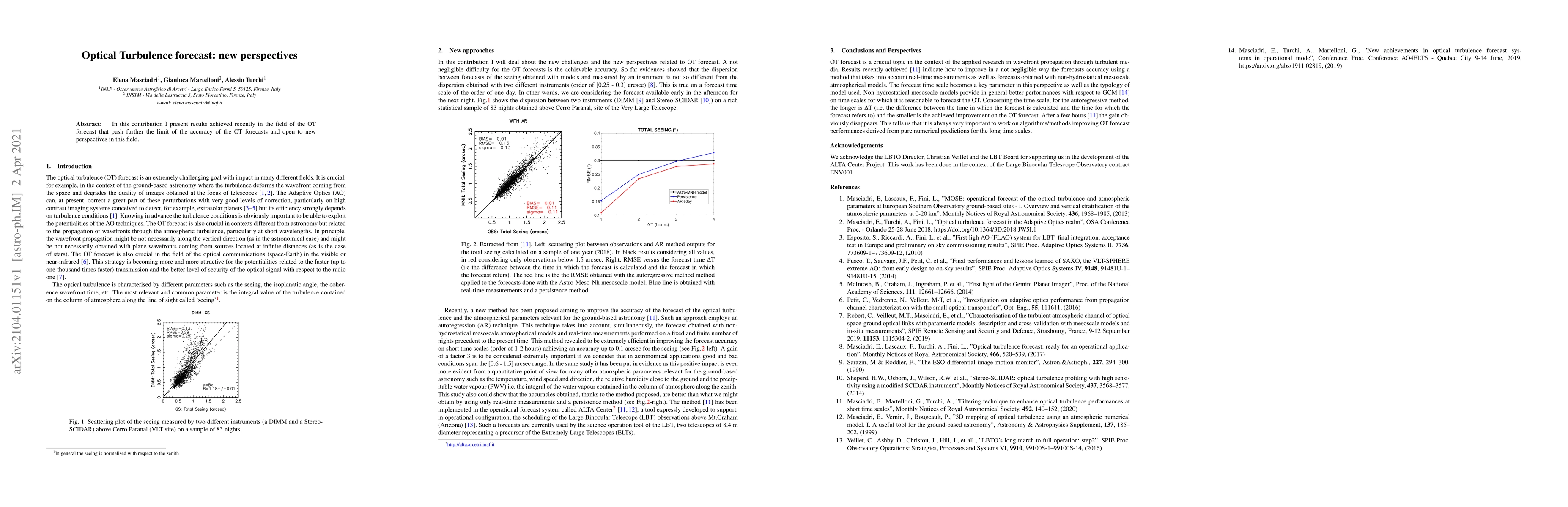 In this contribution I present results achieved recently in the field of the OT forecast that push further the limit of the accuracy of the OT forecasts and open to new perspectives in this field.