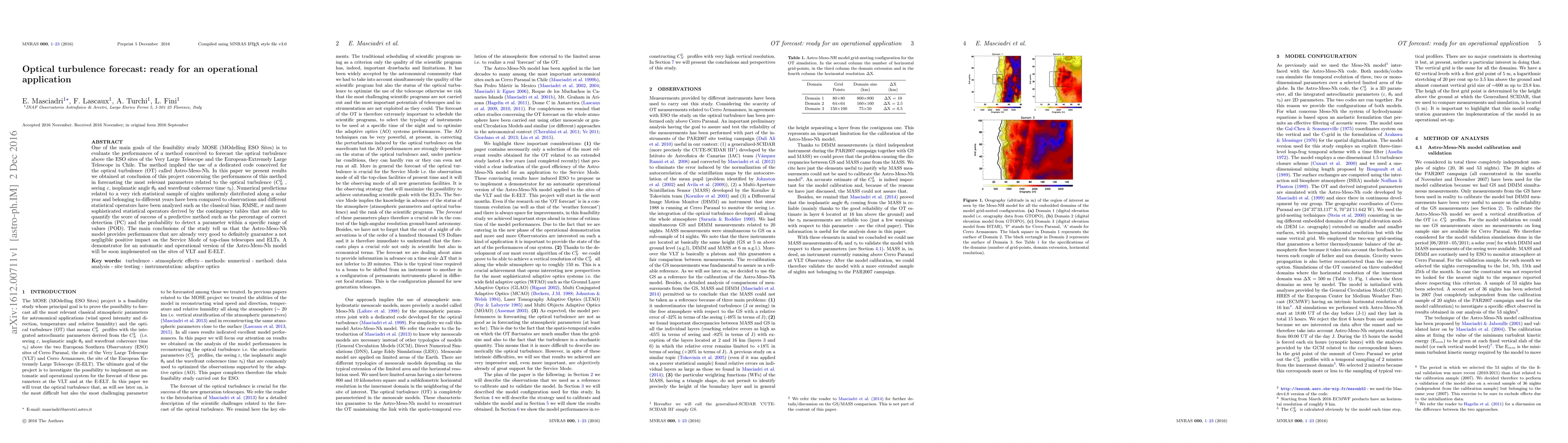 The MOSE project evaluated the Astro-Meso-Nh model for forecasting optical turbulence parameters, showing promising results in predicting CN2, seeing, isoplanatic angle, and coherence time. The model's performance is deemed sufficiently robust to enhance the operational capabilities of the Very Large Telescope and the European Extremely Large Telescope.