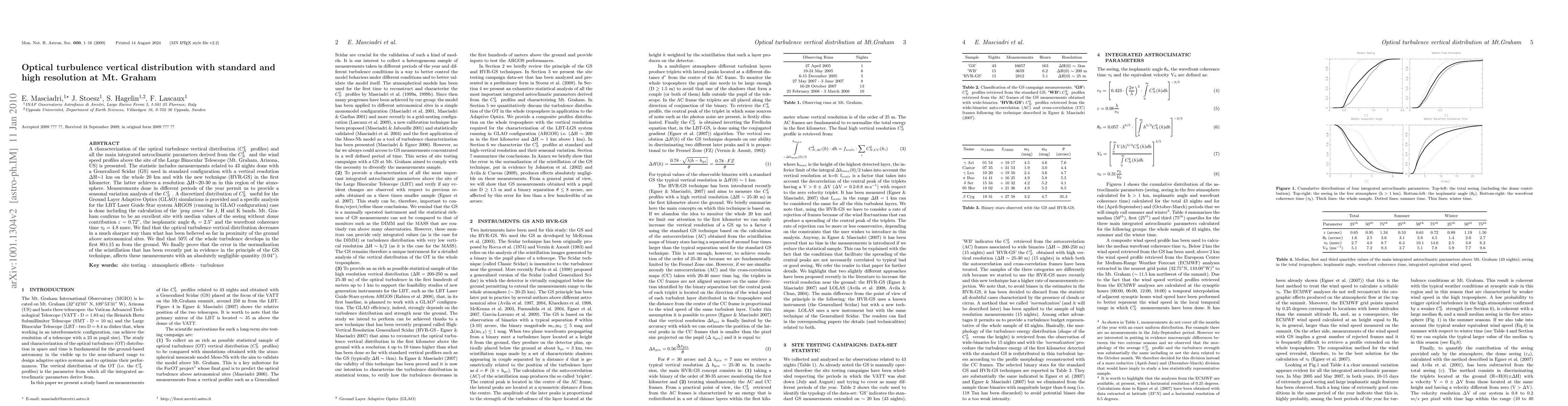 This study characterizes the vertical distribution of optical turbulence (Cn2 profiles) at Mt. Graham, Arizona, using a Generalized Scidar system. It reveals that 50% of turbulence develops within the first 80±15 m from the ground, confirming Mt. Graham as an excellent site for adaptive optics with minimal seeing and high coherence time.