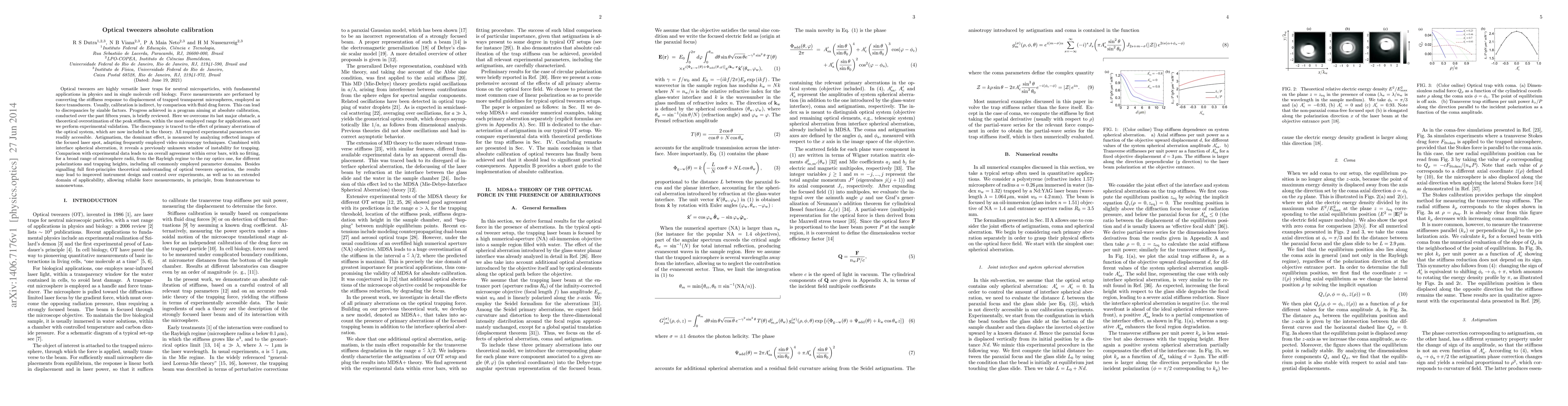 This paper reviews progress in the absolute calibration of optical tweezers, addressing a longstanding theoretical overestimation of peak stiffness. The authors resolve this discrepancy by accounting for primary aberrations, particularly astigmatism, and validate their findings experimentally, leading to improved understanding and broader applicability of optical tweezers for force measurements.
