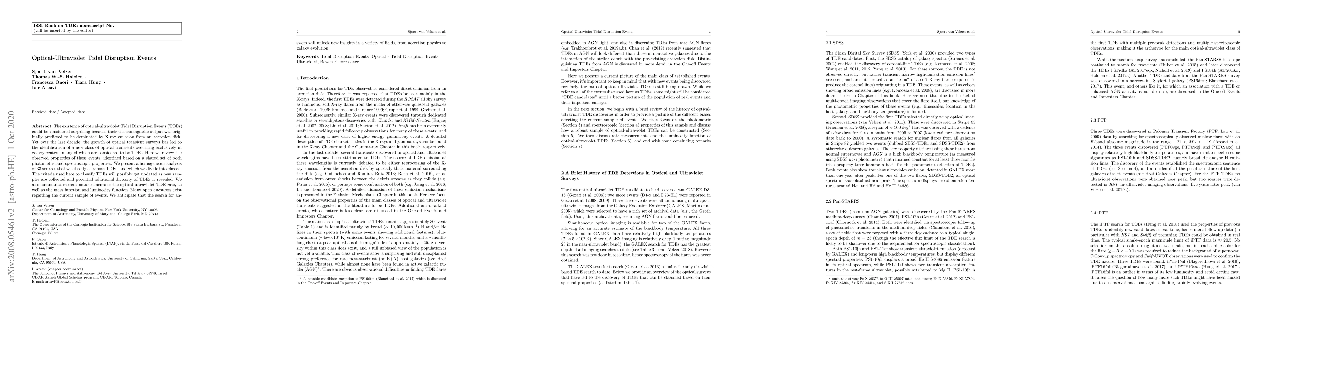 The paper presents a comprehensive analysis of optical-ultraviolet TDEs, including classification criteria, photometric and spectroscopic properties, and measurements of TDE rates, mass function, and luminosity function.