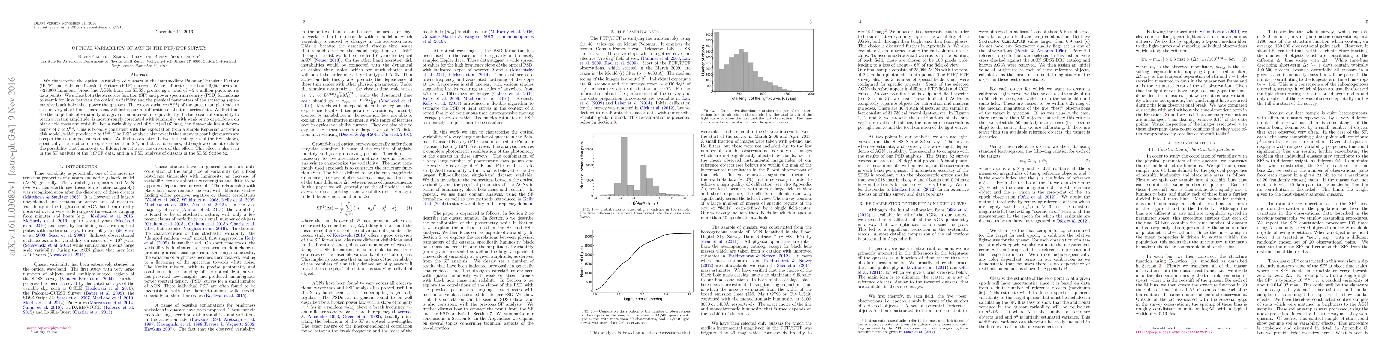 The study characterizes optical variability of quasars in the PTF/iPTF survey, finding that variability time-scale is strongly correlated with luminosity and not with black hole mass or redshift, with some light curves showing steeper power spectrum densities than a damped random walk.