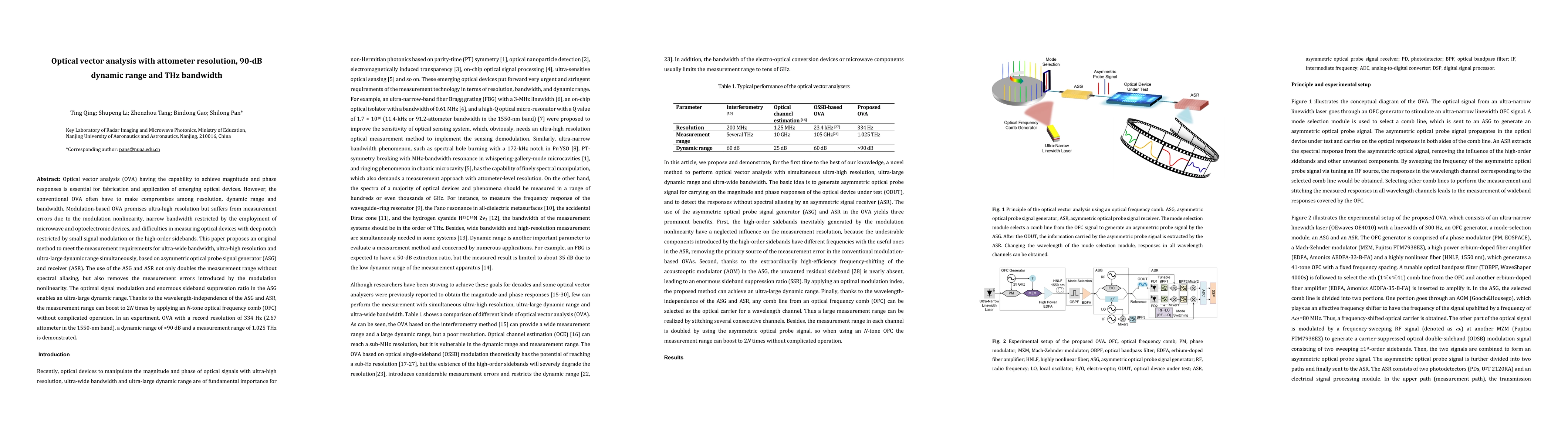 Researchers developed an optical vector analysis method with unprecedented resolution (2.67 attometers), dynamic range (>90 dB), and bandwidth (1.025 THz) using an asymmetric optical probe signal generator and receiver.