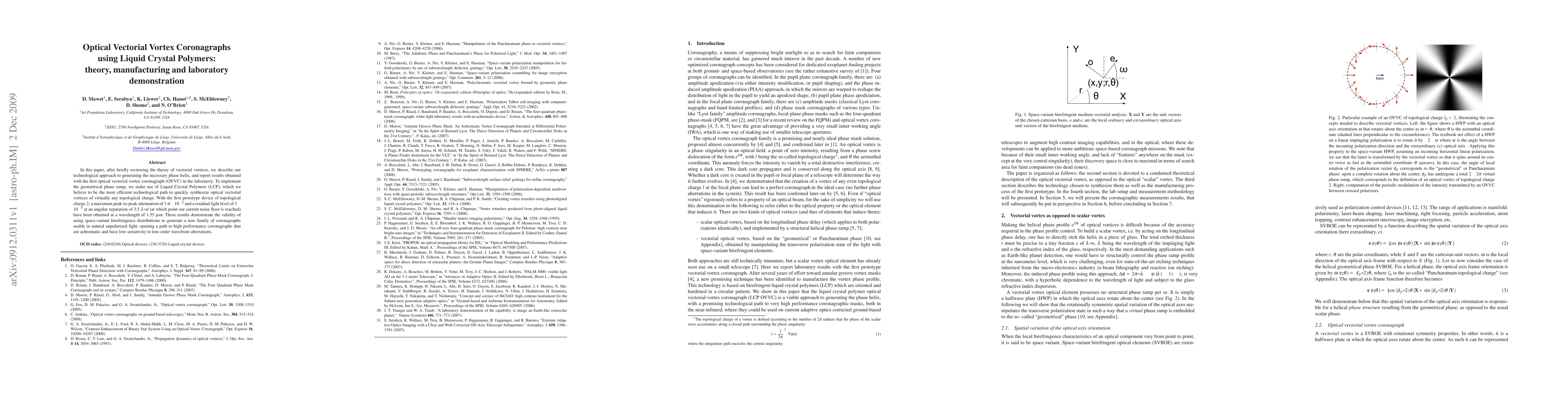 The research utilizes Liquid Crystal Polymers (LCP) to generate space-variant birefringence distributions for creating vectorial vortex coronagraphs, demonstrated through theory, manufacturing, and laboratory testing.