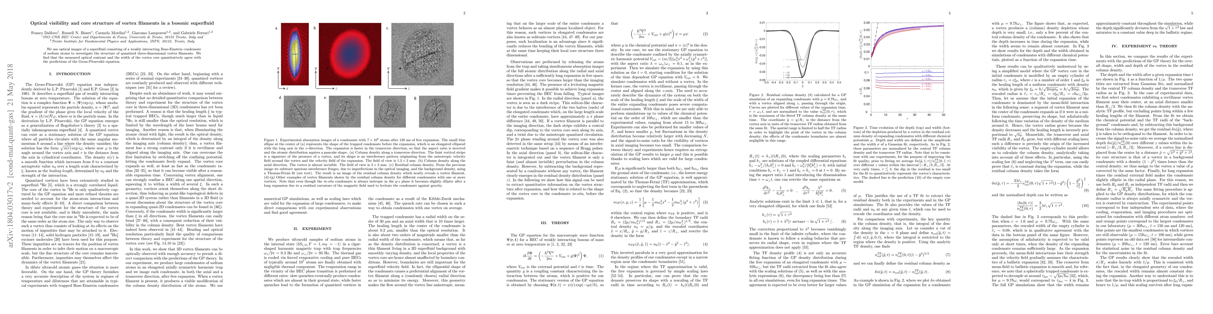This study uses optical imaging to examine vortex filaments in a bosonic superfluid, revealing that the optical contrast and vortex core width match predictions from the Gross-Pitaevskii equation, confirming theoretical models of vortex structures in superfluids.
