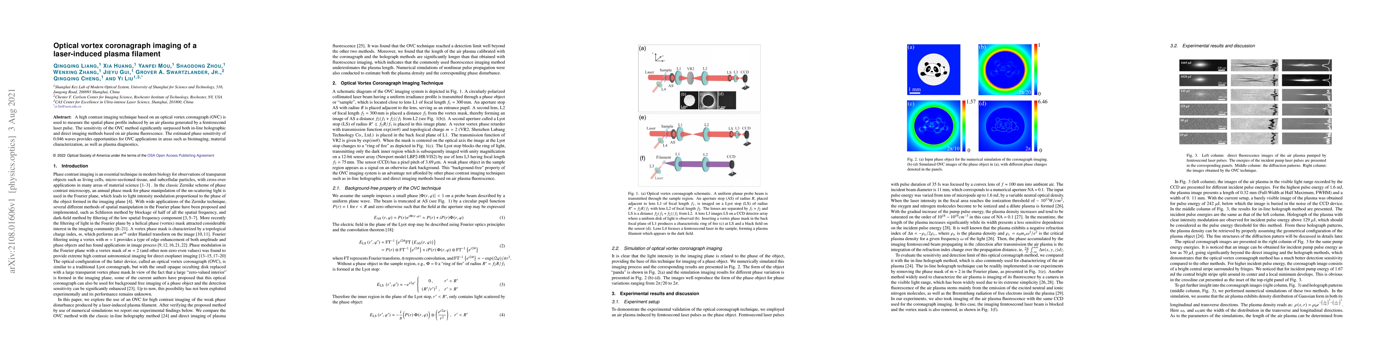 A high contrast imaging technique based on an optical vortex coronagraph (OVC) is used to measure the spatial phase profile induced by an air plasma generated by a femtosecond laser pulse. The sensitivity of the OVC method significantly surpassed both in-line holographic and direct imaging methods based on air plasma fluorescence. The estimated phase sensitivity of 0.046 waves provides opportunities for OVC applications in areas such as bioimaging, material characterization, as well as plasma diagnostics.