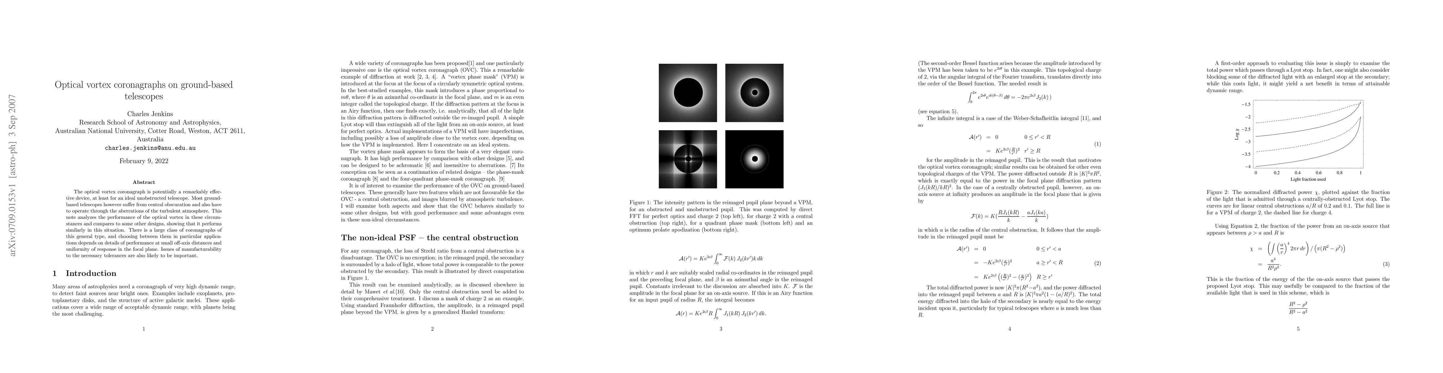 Optical vortex coronagraphs offer promising performance on ground-based telescopes despite central obscuration and atmospheric aberrations, with similar performance to other designs.