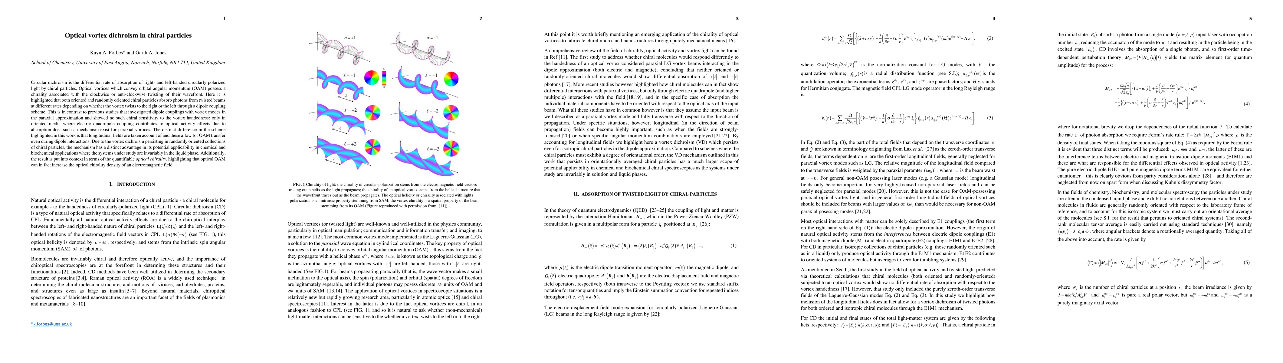 Researchers discovered that chiral particles can absorb light at different rates depending on whether a twisted beam twists clockwise or counterclockwise, revealing a phenomenon called optical vortex dichroism. This finding has potential applications in chemical and biochemical studies, particularly in liquid phase systems.